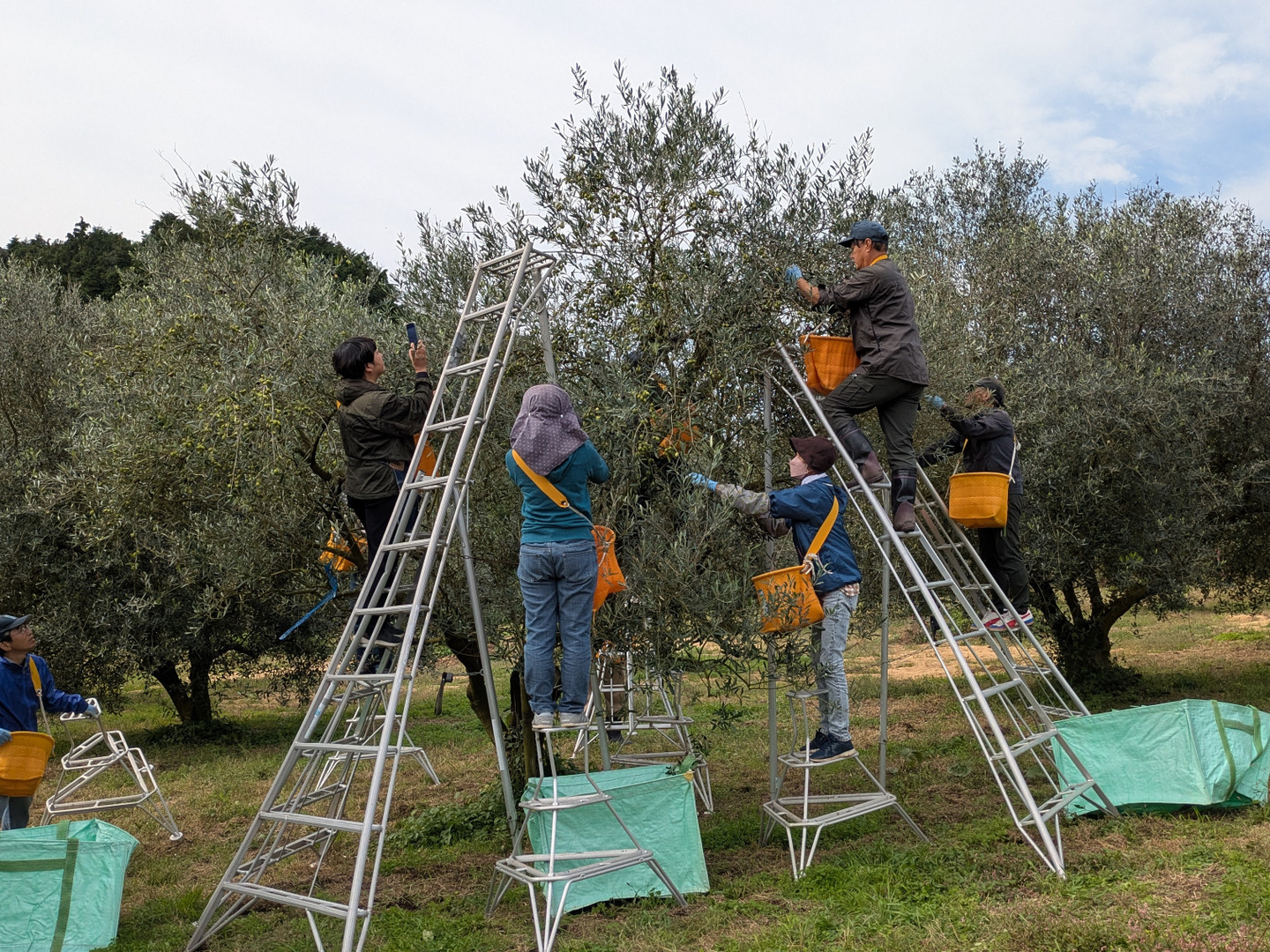 - 1 標高350mの高台で特色ある20品種のオリーブ栽培を中心にえごまを手掛ける。