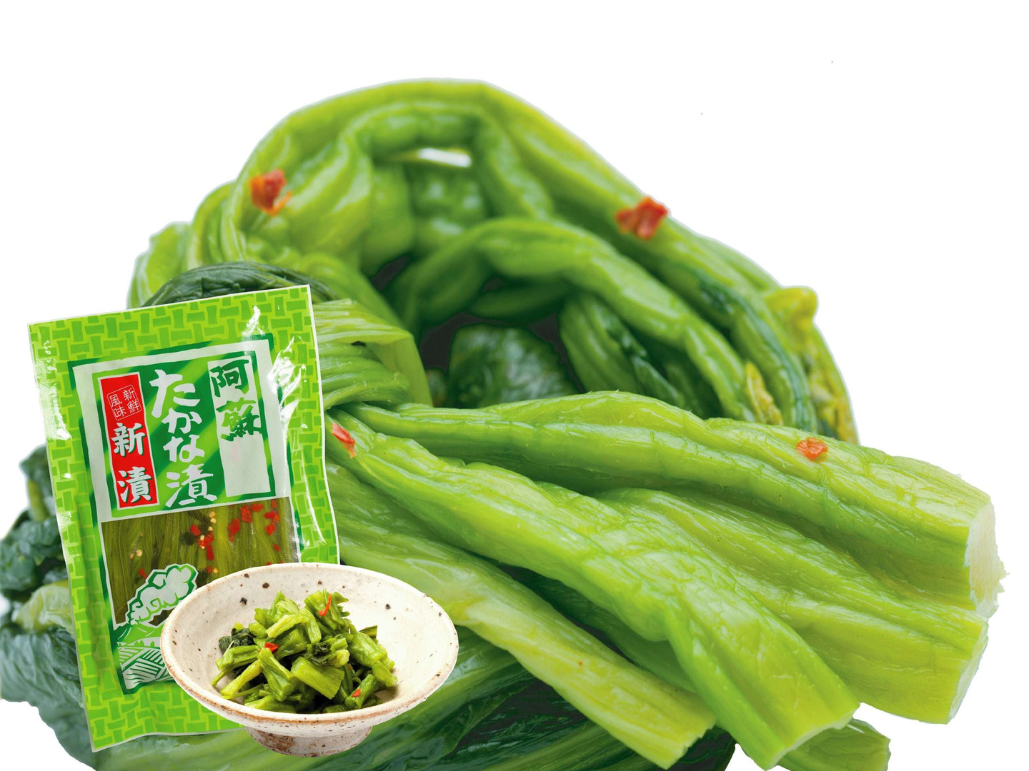 - 1 名産の阿蘇高菜、手折で一つ一つ丁寧に