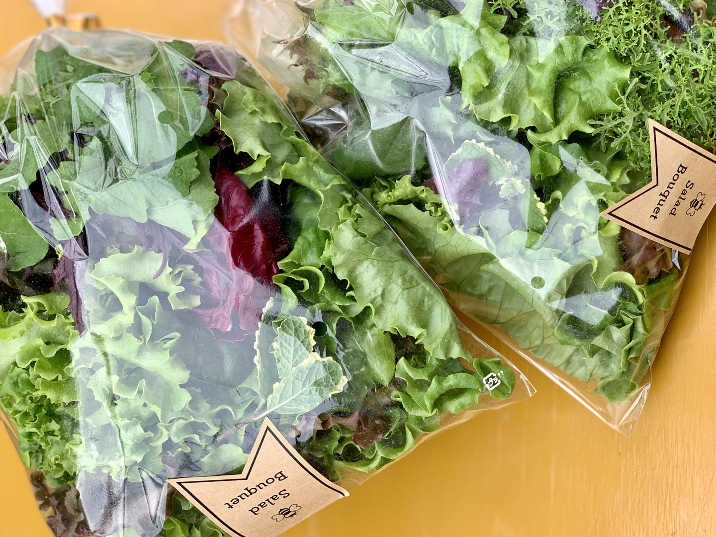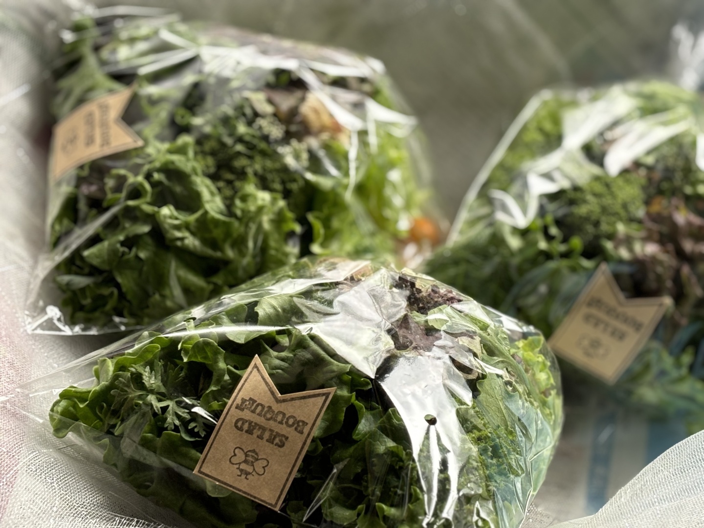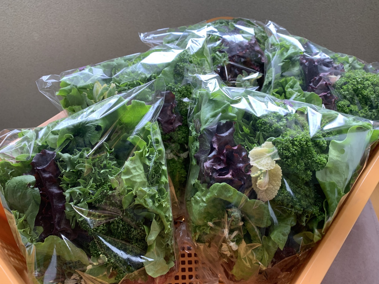 グリーンやパープルのフリルが可愛いリーフレタスに季節のハーブ『花束みたいね』とのお客様の声から名付けられました。ひと袋の中に数種類のリーフレタスやルッコラやマスタードリーフなどのハーブが入ったサラダセットになります。