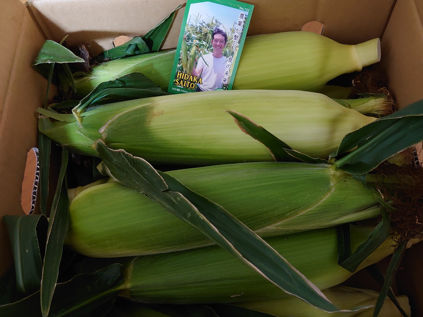朝採りしたトウモロコシを、その日の内に発送致します。