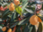 袋掛け栽培をしています。樹形を放射状に誘引しています。枝を低く放射にする事で、日当たりが良く果実の糖度が上がります。又 枝を固定することで台風又強風等により枝の揺れを少なくして果実が傷むのを防いでいます。