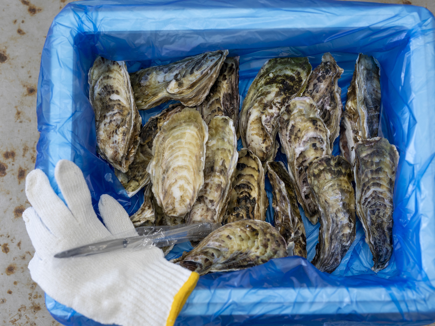 もともと牡蠣の生育に必要なミネラルが豊富な雄勝湾ですが、さらに牡蠣同士の間隔を広げてゆったりのびのび、牡蠣ひとつひとつにしっかり栄養が行き渡るように育てているため、身がぶりっぶりのぷりぷりです。