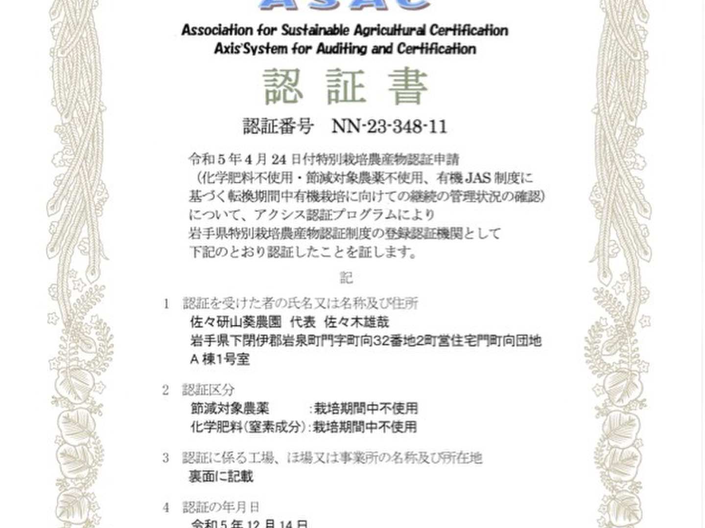 ■令和5年12月14日に特別栽培(栽培期間中:農薬・化学肥料不使用)の認証を取得しました。画像2枚目参照。