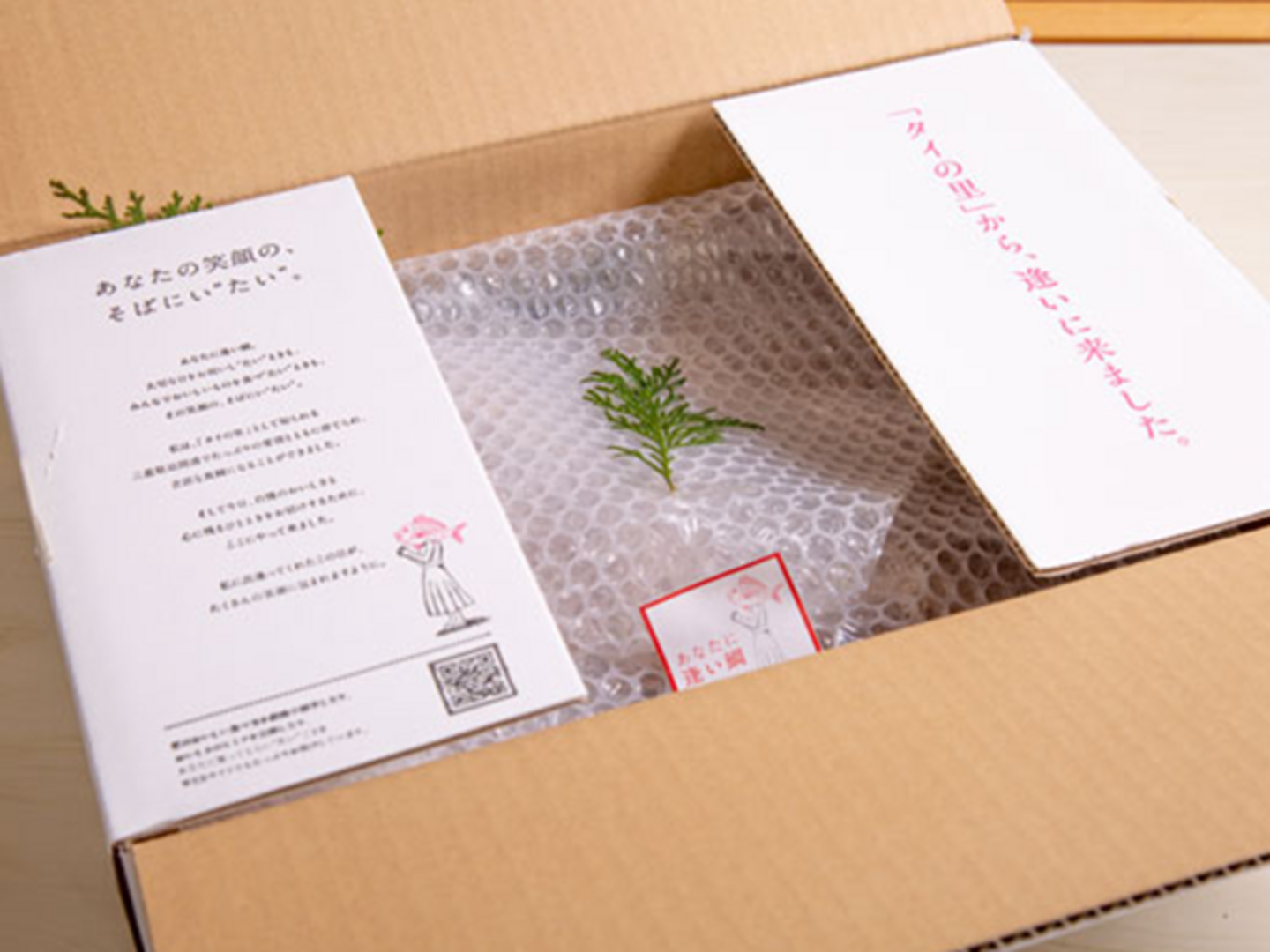 うろこを傷つけないように丁寧にすくい上げた真鯛を、海のすぐそばの調理場で、その日のうちに塩焼きにして配送します。鯛は水揚げから2〜3日後にいちばん甘みを感じやすいため、ご自宅に着く頃にはちょうど食べごろに。サイズにもこだわって、筋肉が付き過ぎず、ボリューム感と肉のやわらかさのバランスが絶妙な1〜1.2kgの鯛を厳選してお届けします。