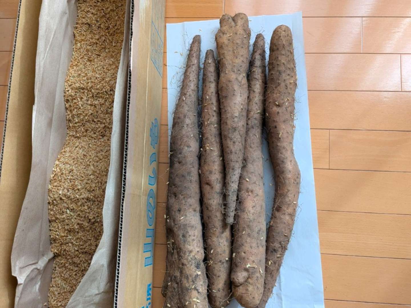 火山灰土壌の固めの土で育った為、味、粘り共に強いです、それでも掘り立ては水分が多い為、味、粘り共にまだ真骨頂ではありません、保存しながら適度に乾燥してくる事によって甘みや粘りが増してきます。
