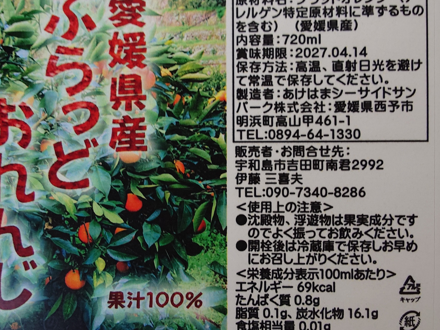 商品について あわせ買い対象 同生産者の別の「あわせ買い対象」商品と一緒にご注文いただくと、送料をまとめてお届けできる場合があります。 内容 愛媛県産ブラッドオレンジジュース720ml 4本セット 発送 ヤマト運輸(食べチョク特別送料) 送料 ¥ 常温便 + ¥ 0 数量1点ごとに送料が発生します。 種別 果物 みかん・柑橘類 果物 オレンジ ブラッドオレンジ 加工品 飲料 フルーツジュース 加工品 飲料 ジュース 産地 愛媛県 特定原材料 オレンジ 慣行栽培 果物 加工品 ブラッドオレンジ フルーツジュース ジュース 愛媛県x果物 愛媛県x加工品 愛媛県xみかん・柑橘類 愛媛県x飲料 愛媛県xオレンジ 愛媛県xブラッドオレンジ 愛媛県xフルーツジュース 愛媛県xジュース 商品説明 愛媛県宇和島産のみかんを搾った果汁100%のストレートジュース(720ml)4本セット【ぶらっどおれんじジュース】 みかんの品種:ブラッドオレンジ(モロ、タロッコ) 1本に使用したみかん:約1.9Kg 糖度:12.1 PH:3.71 賞味期限:2027年4月14日 もっと見る この商品のことをお友達にもシェアしませんか ポスト シェア