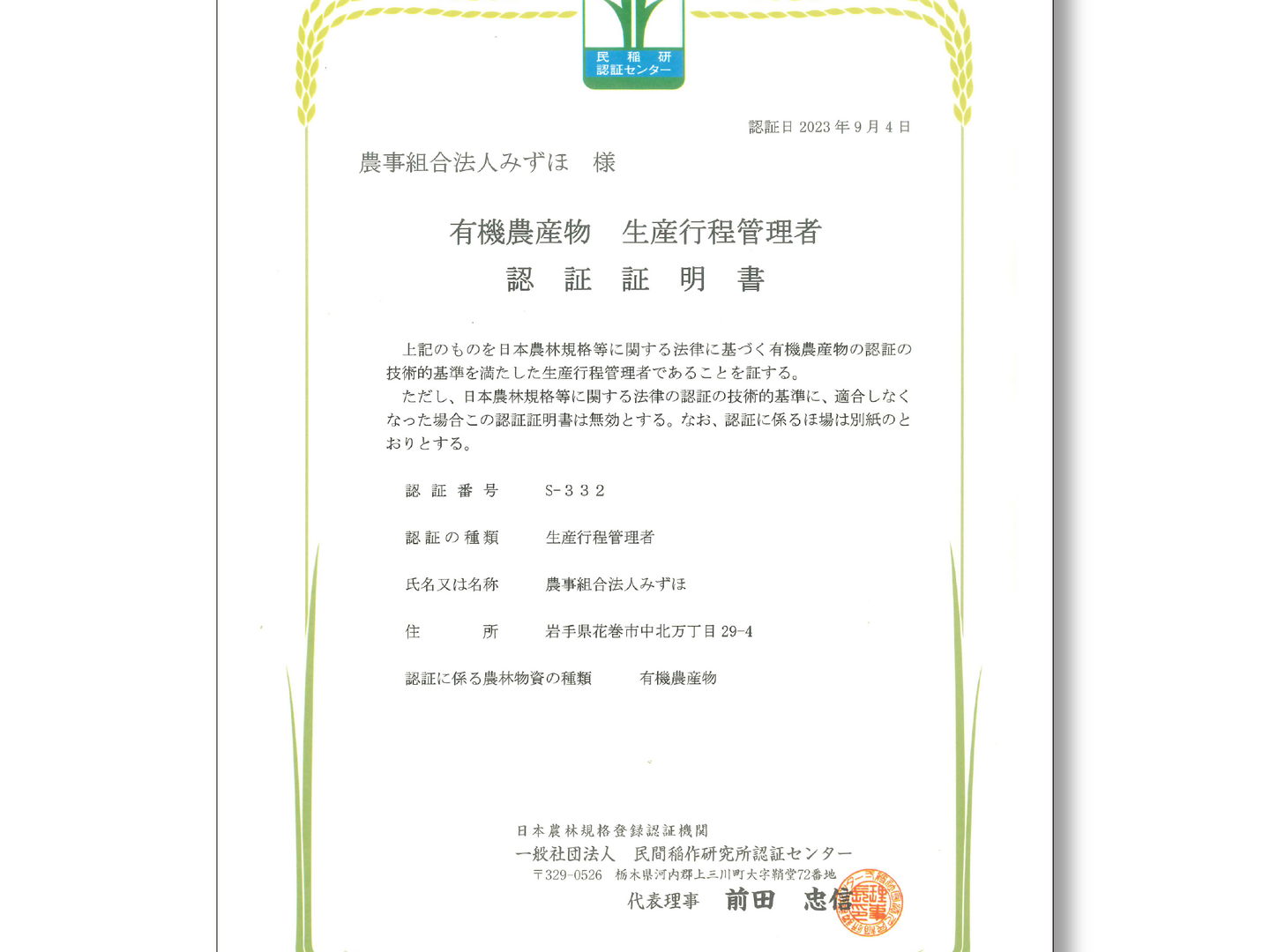 ●栽培:生産のこだわり:化学肥料不使用・農薬不使用で有機JAS認証のお米です。さらに美味しさにもこだわり食味値80点以上のみを「みずほ米」と命名しました。