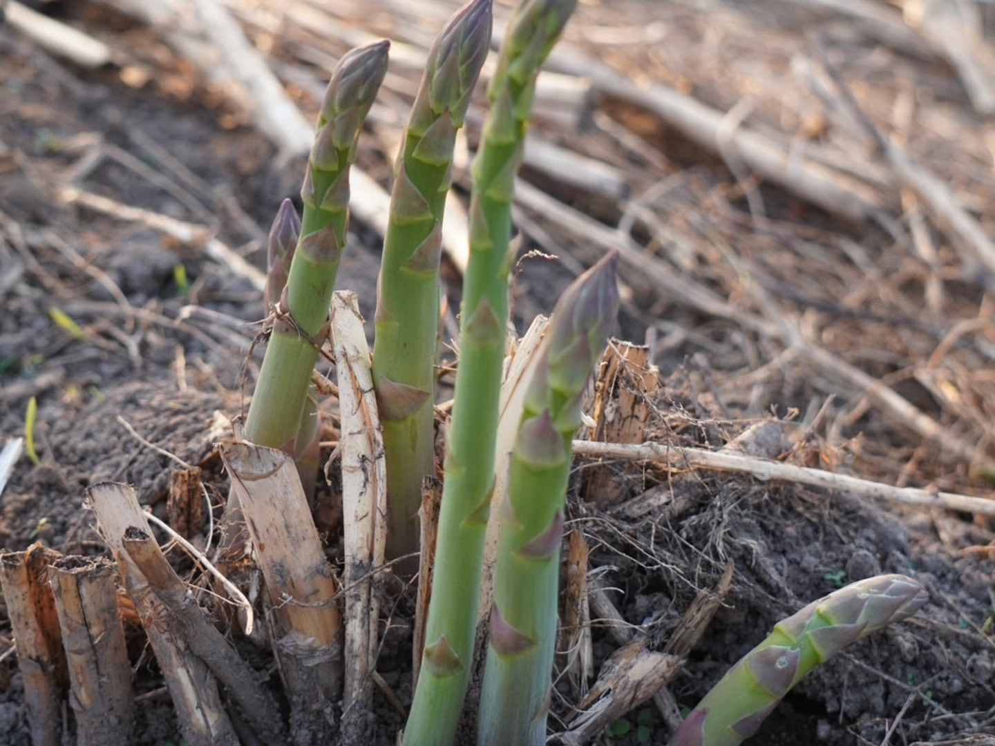 秋口に米ぬか等微生物が大好きな有機物を土に撒き、残渣と共に発酵させます。春先、雪が溶けるとハウスの中が糠床のようになり、有用微生物たちが美味しいアスパラを作るのを手助けしてくれます。