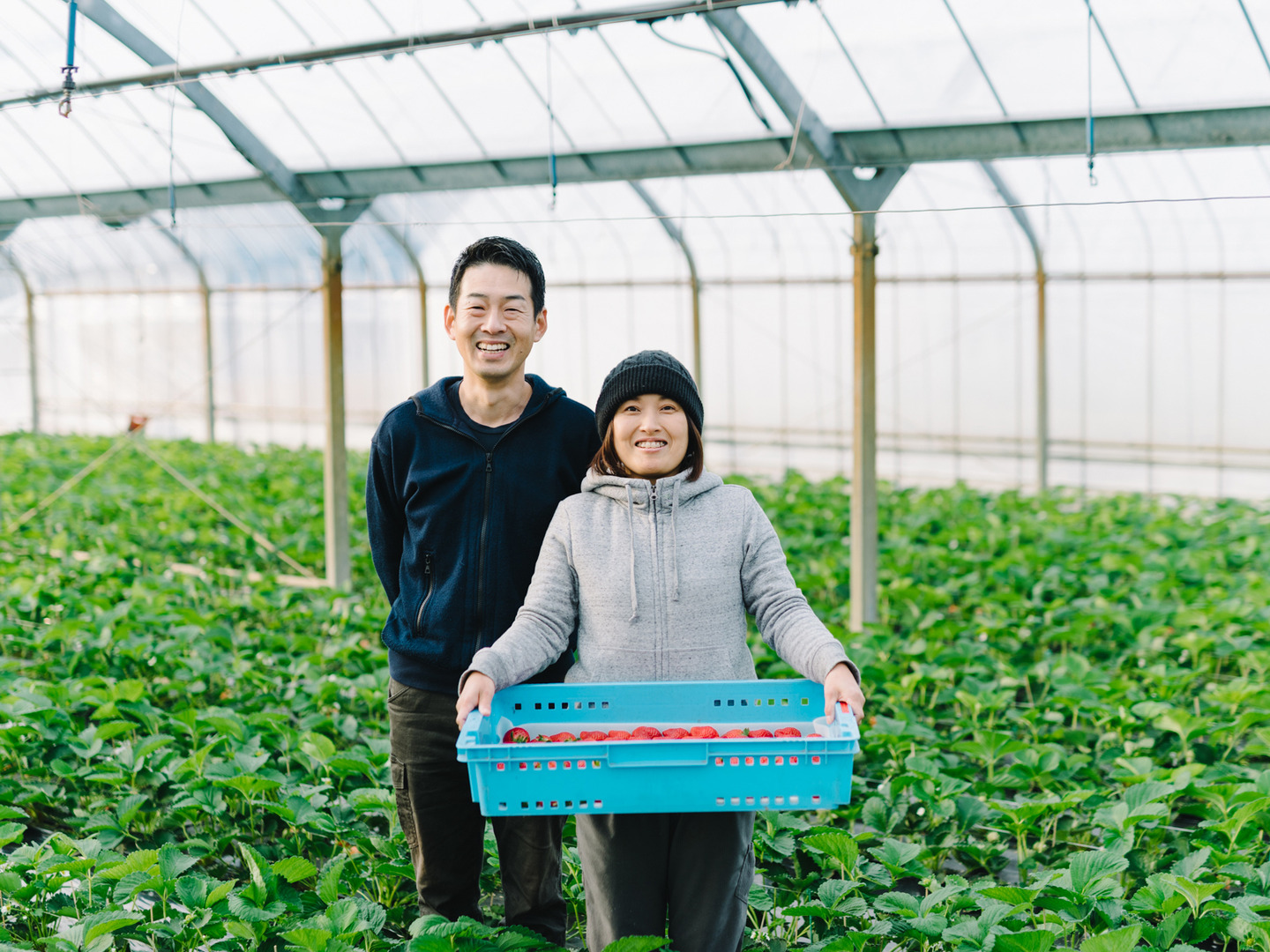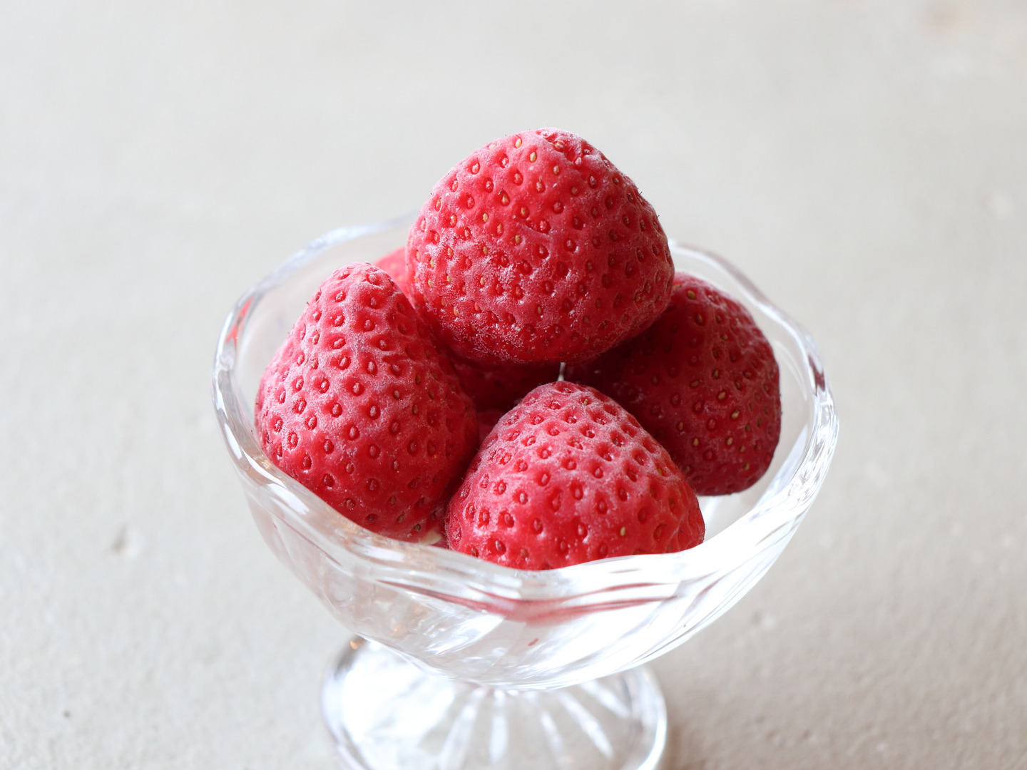 ゆっくりと完熟させた食べごろのあまおうを、毎朝収穫し、その日のうちに冷凍しています。