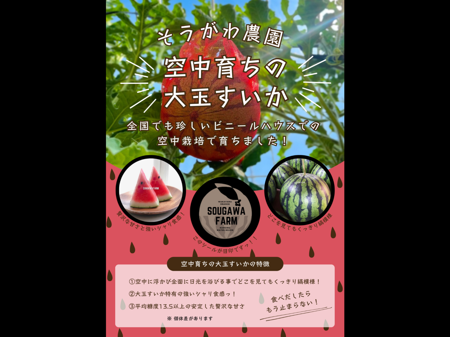 全国でも珍しい空中栽培で育った大玉すいかです!!