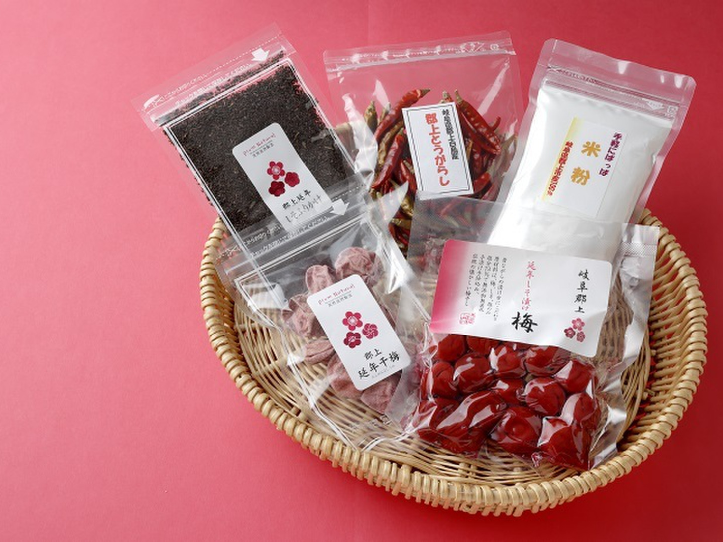 【お得!】詰め合わせ5点セット 昔ながらの無添加無着色塩分13%の梅 無化学調味料のしそふりかけ 辛い!郡上とうがらし 干梅 米粉