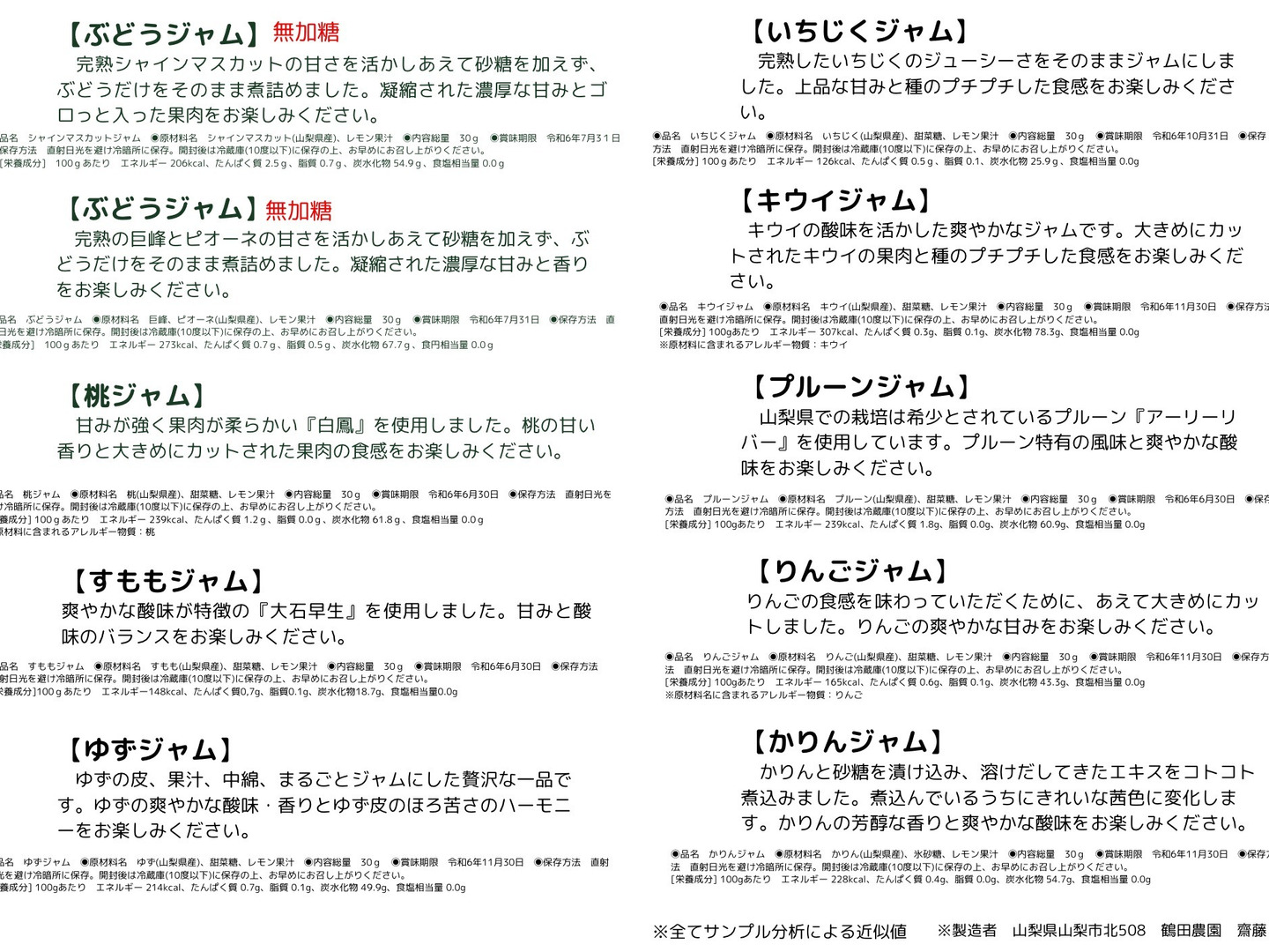【母の日ギフト】山梨の果物の旨みを詰めました💓無添加プチジャム10種