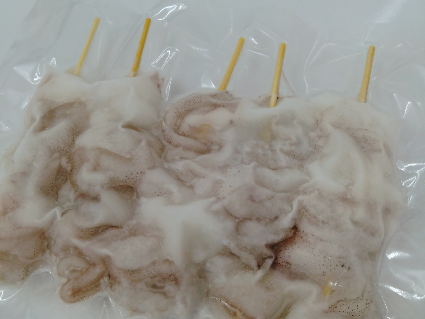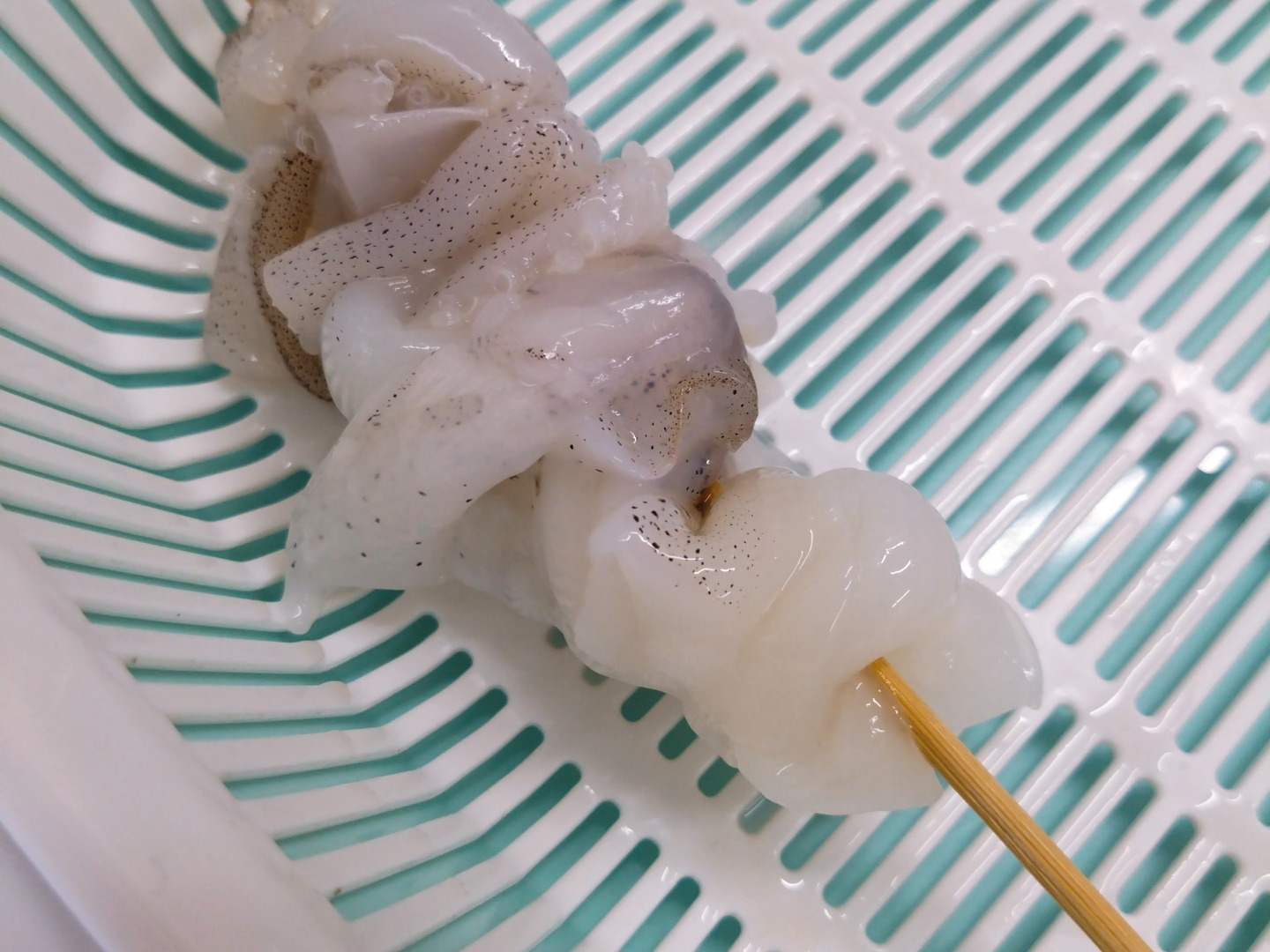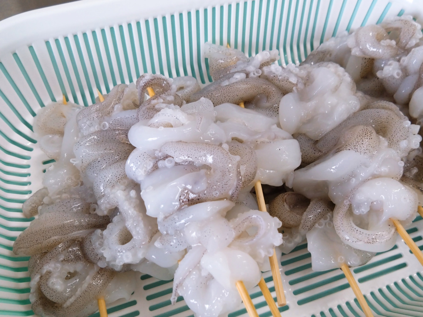 - 高級アオリイカのゲソを食べやすく串刺しにしてあります