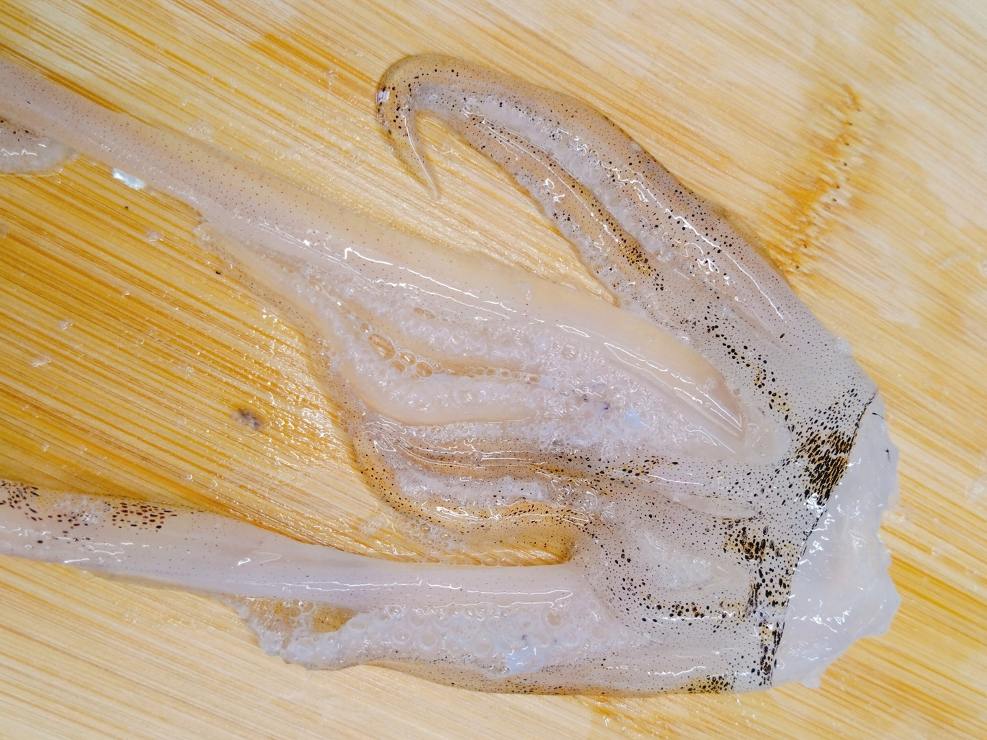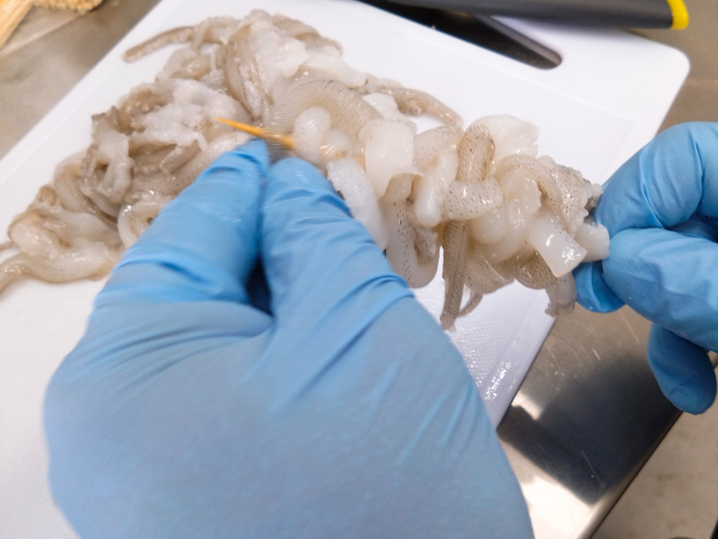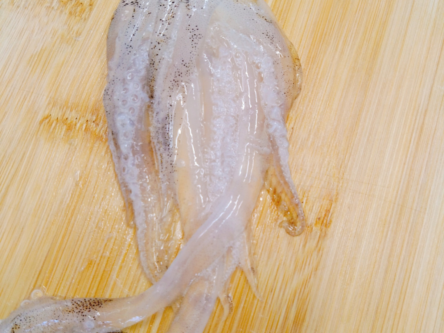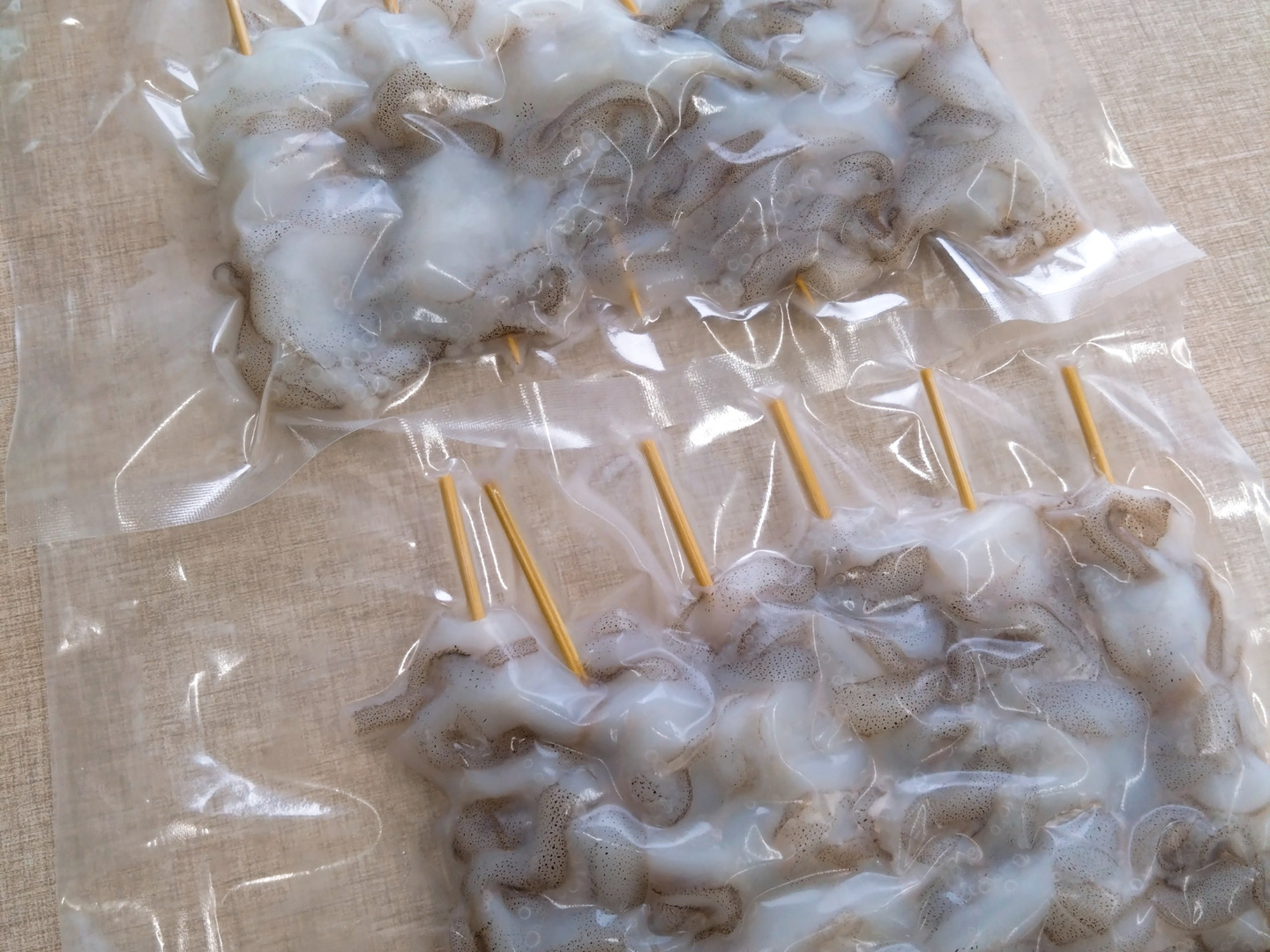 - 高級アオリイカのゲソを食べやすく串刺しにしてあります