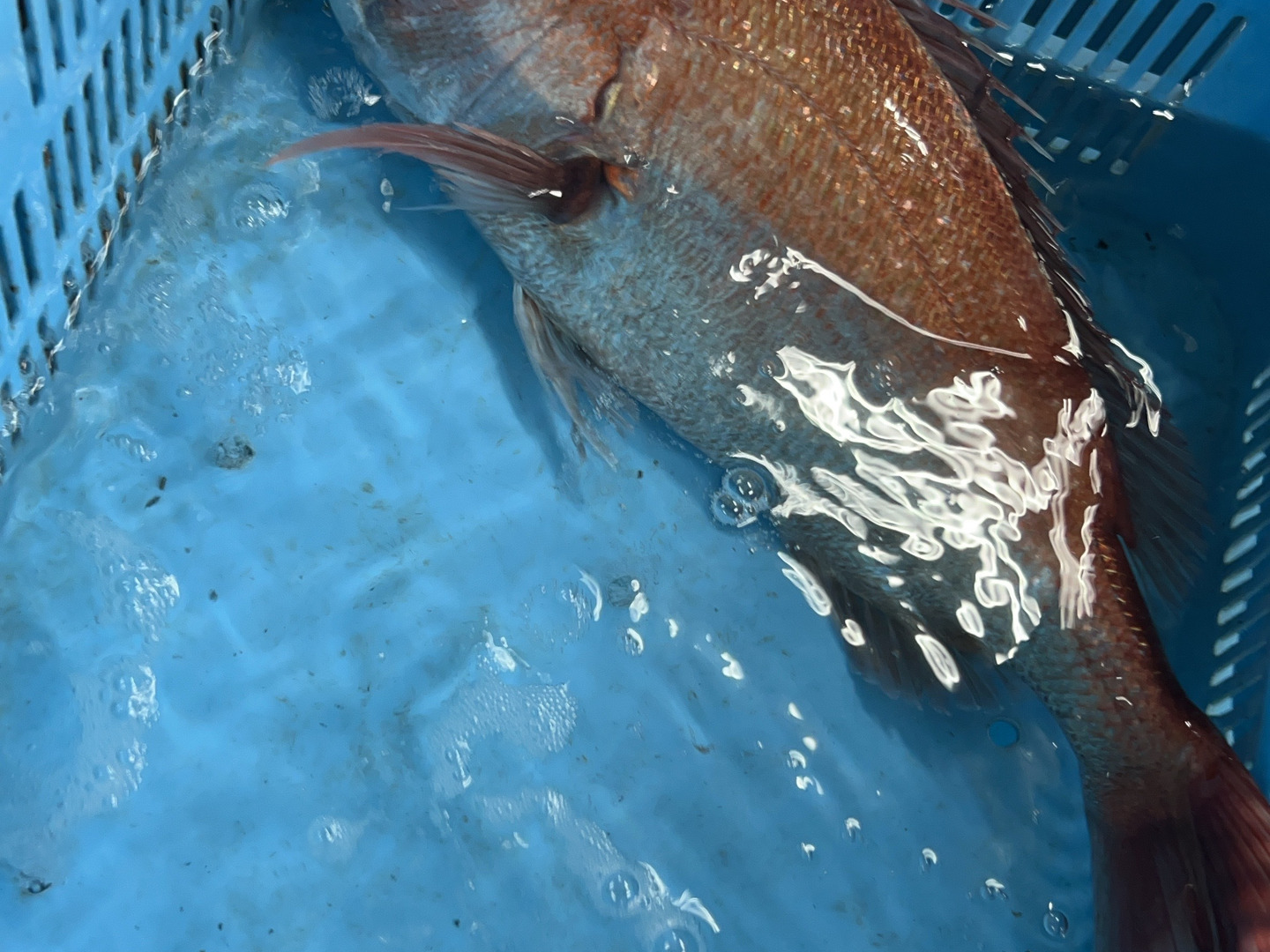 餌をたくさん食べてぷりぷりのタイなので、お刺身、塩焼き、煮付けなんでも美味しいです!