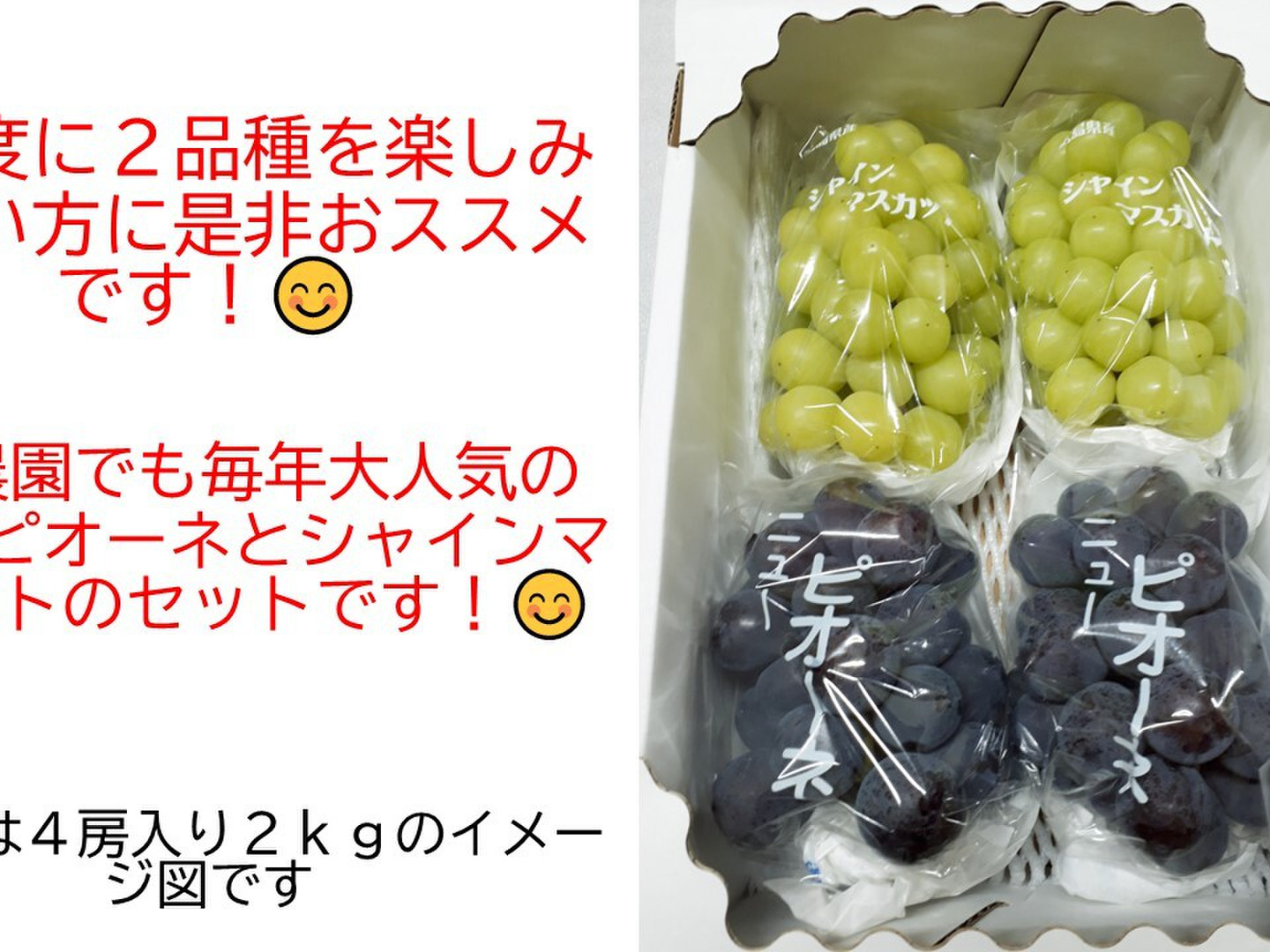 ・入数は3~6房になります(※入り数は天候次第で収穫年により変動する場合がございます) ・房数、果実のサイズ、粒の大きさ等のご指定は出来ませんのであらかじめご了承下さい。