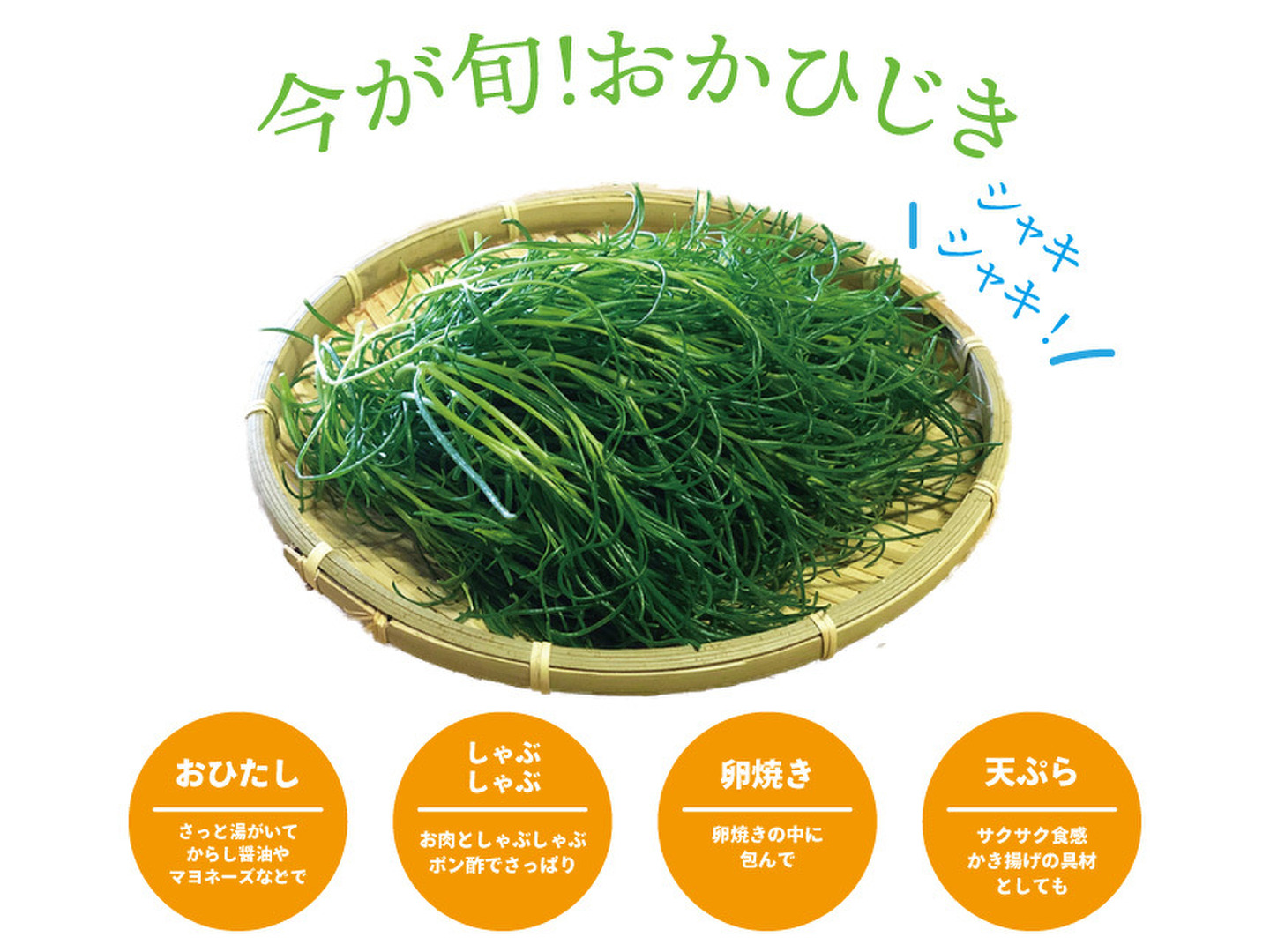 商品について あわせ買い対象 同生産者の別の「あわせ買い対象」商品と一緒にご注文いただくと、送料をまとめてお届けできる場合があります。 内容 6袋(1袋あたり150g) 発送 ヤマト運輸(食べチョク特別送料) 送料 ¥ クール便(冷蔵) + ¥ 330 数量1点ごとに送料が発生します。 種別 野菜 産地 福島県 農薬化学肥料不使用 野菜 福島県x野菜 商品説明 <こだわりポイント>山形発祥の野菜、おかひじき!山形でおかひじきを広めたと言われる農家、山形のおかひじき作りの達人が作ったおかひじきです。すべて山形の自社圃場で自家採種しています。若芽摘みにこだわり、やわらかくシャキシャキ食感がたまりません!<おかひじきとは?>おかひじきとは、ほうれん草と同じアカザ科の野菜で、もともと日本に自生していた在来種です。シャキシャキとした食感が特徴で、様々なお料理に合う野菜です。カリウムなどのミネラルが含まれており栄養満点!〇こだわりの栽培化学肥料・農薬は使用しておりません。自家製の有機肥料のみで育てました。<オススメの食べ方>①子供も大好き!一番おすすめはさっと湯がいて、からし醤油とマヨネーズ。②しゃぶしゃぶで。お肉との相性抜群です!③ラーメンの付け合わせに。④味噌汁やスープに。⑤卵焼きの中の具材として。⑥他の葉物と混ぜてサラダで。⑦天ぷら様々な食べ方があります♪<保存方法>袋などに入れ、冷蔵庫の野菜室に保存し、お早めにお召し上がりください。 もっと見る この商品のことをお友達にもシェアしませんか ポスト シェア