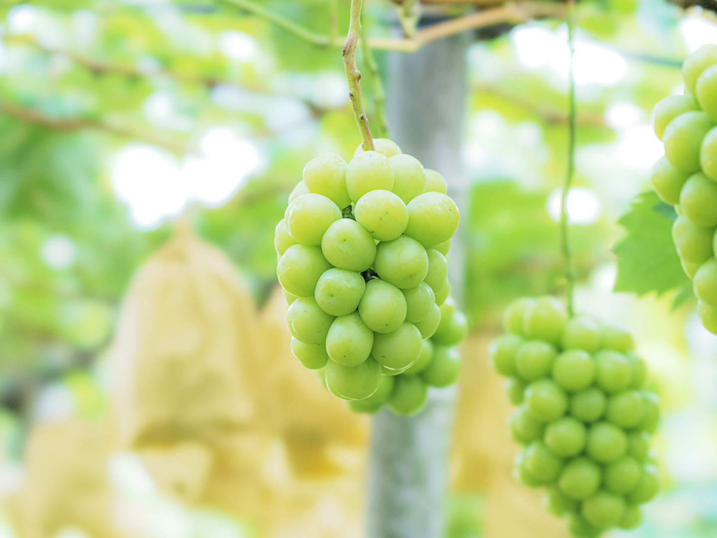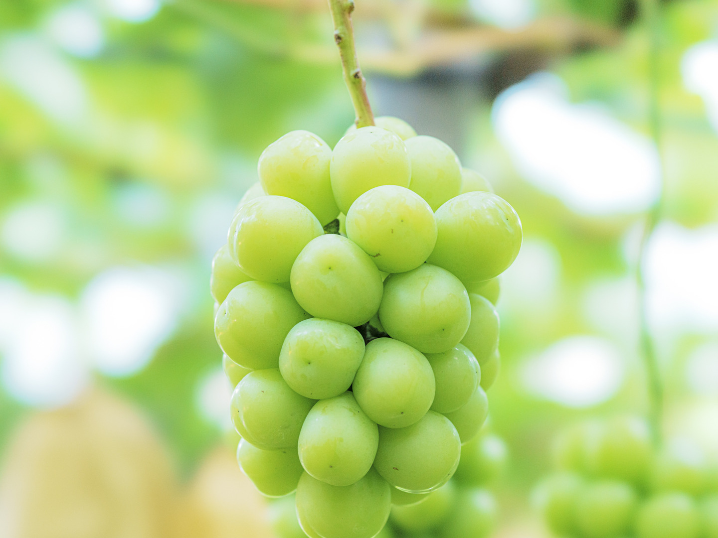 当農園では副梢管理を徹底しておりますので一粒一粒が大きく肥大し、高糖度のシャインマスカットを作っています。