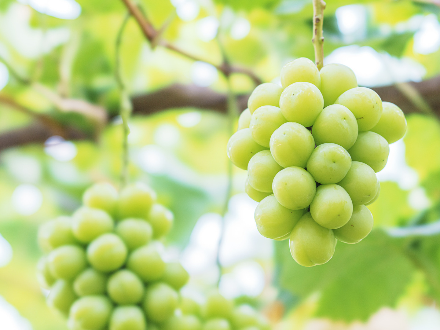 シャインマスカットが持つパリッとした独特の食感、そして口の中に広がる高糖度で皮まで丸ごと食べられる実はフルーツ王国岡山の中でも特に人気のあるフルーツです。