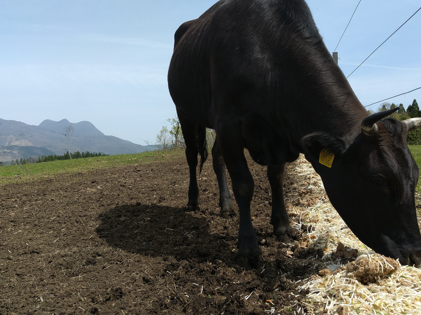配合飼料や輸入牧草は一切与えず、補助飼料に食品残渣を与えています。