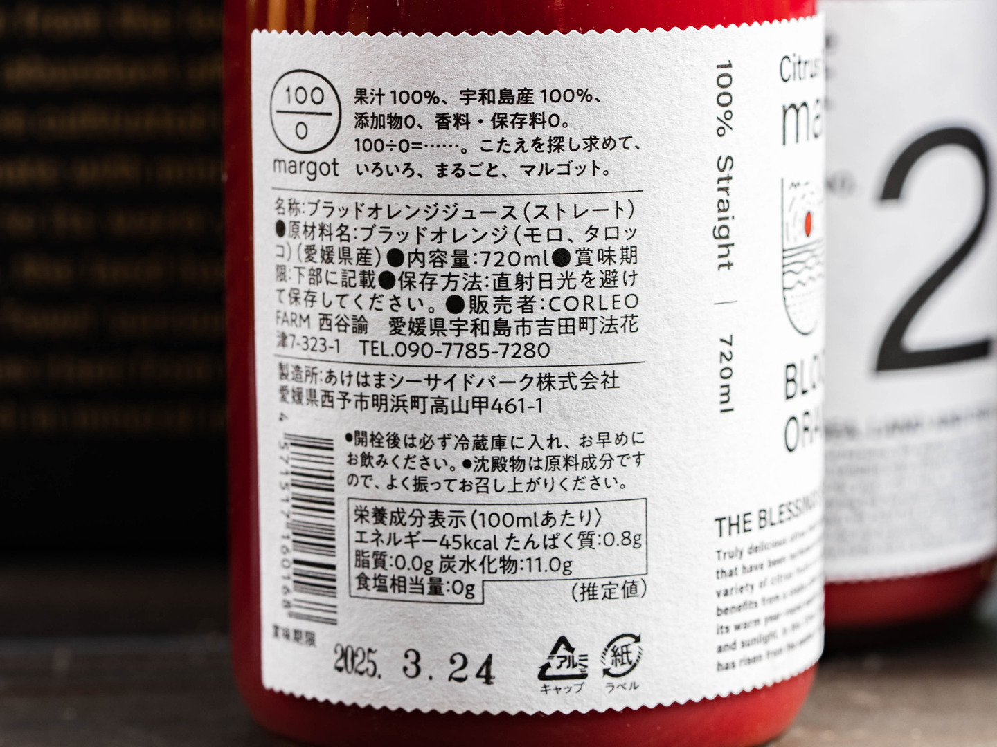 【無添加・果汁100%のストレートジュース】1本シトラスフルーツジュース マルゴット No2 BLOOD ORANGE