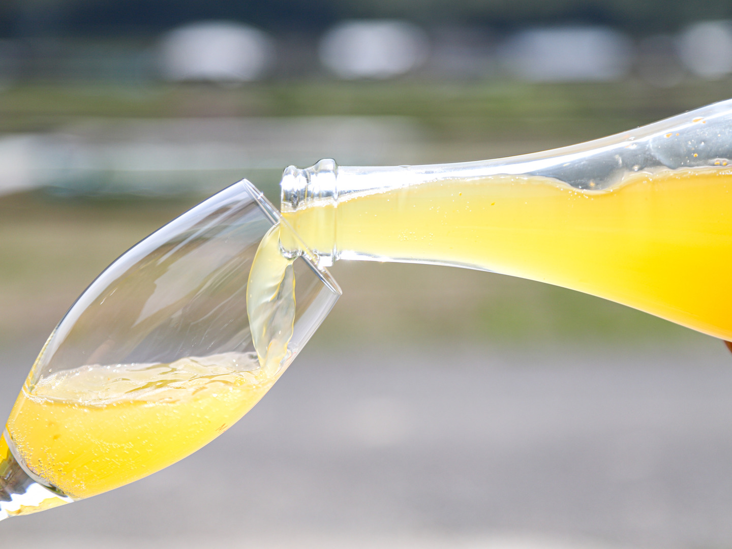 やや糖分が残っているうちに瓶詰めすることで発酵活動による天然の炭酸ガスを⾃然に溶け込ませた微発泡ワインです。