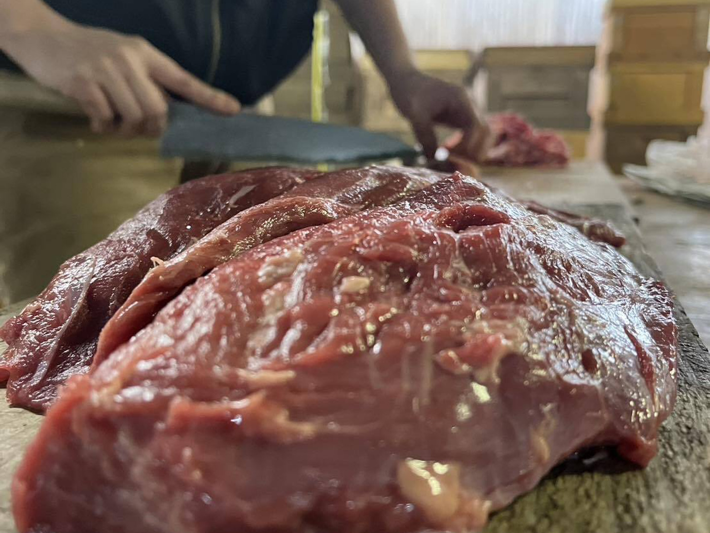 ロースでも脂がほとんど被っていない完全な赤身肉で、噛みしめるほどに大地の旨味が滲み出て、後味にほのかな和牛の香りが漂います。