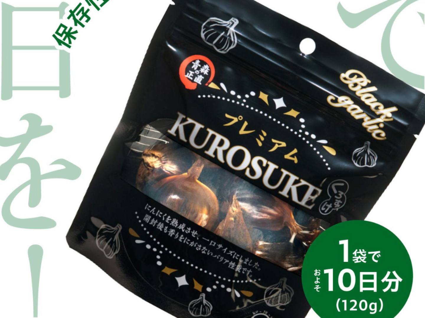 自社生産した青森産福地ホワイトをさらに自社基準で自社ブランド化して【しろすけ】と位置し、それを原料に黒にんにく【くろすけ】が作られます。
