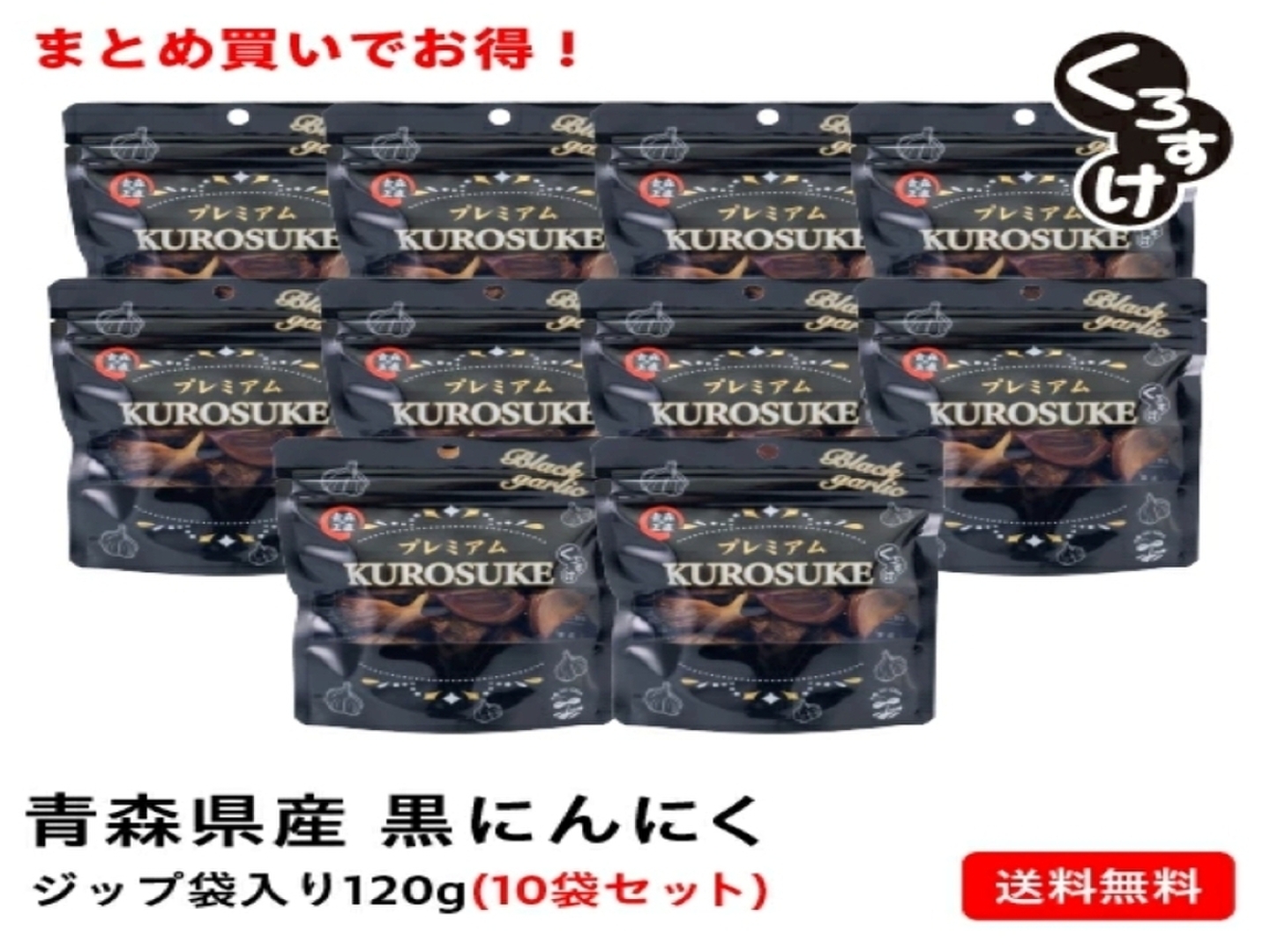 衝撃の甘さ!!黒にんにく「くろすけ」120g入りzip袋×10袋 まとめ買いがお得に