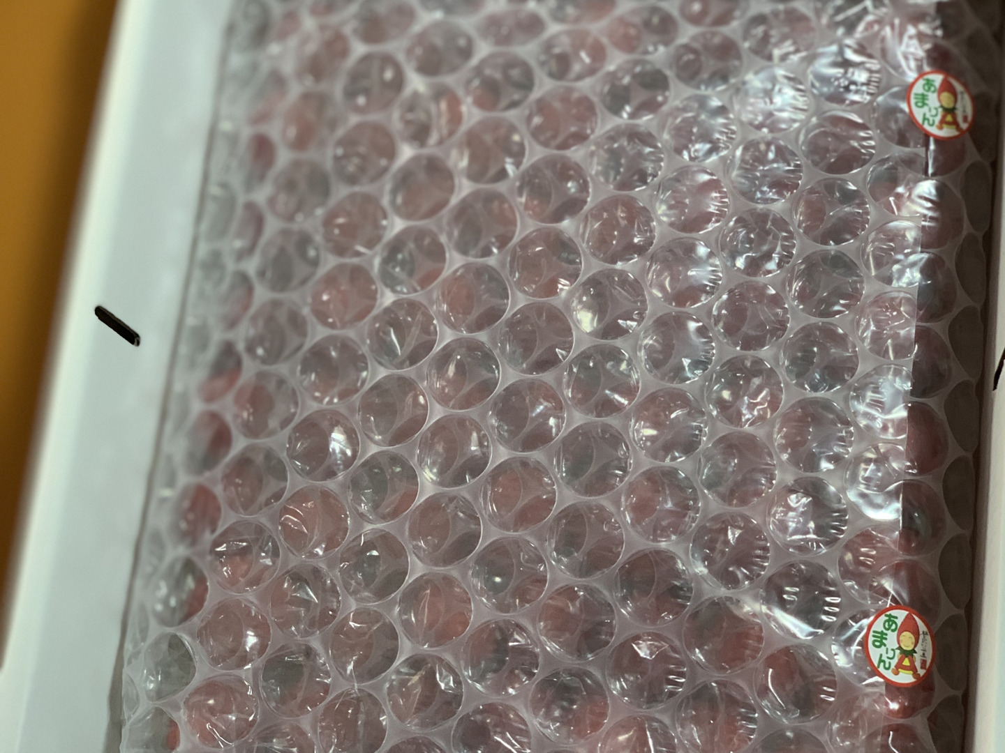 - 朝採りの小粒いちごをプチプチでおおって発送