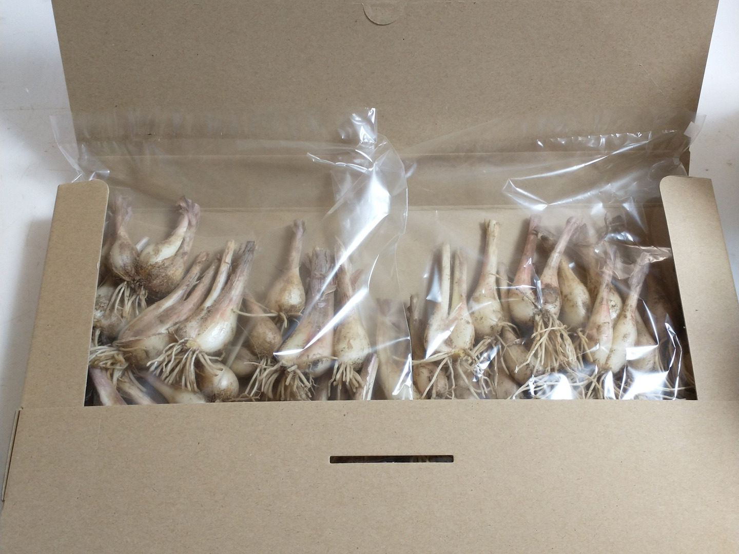 本体(鱗片)を4~5㎝前後、根を1㎝前後残して調製します。