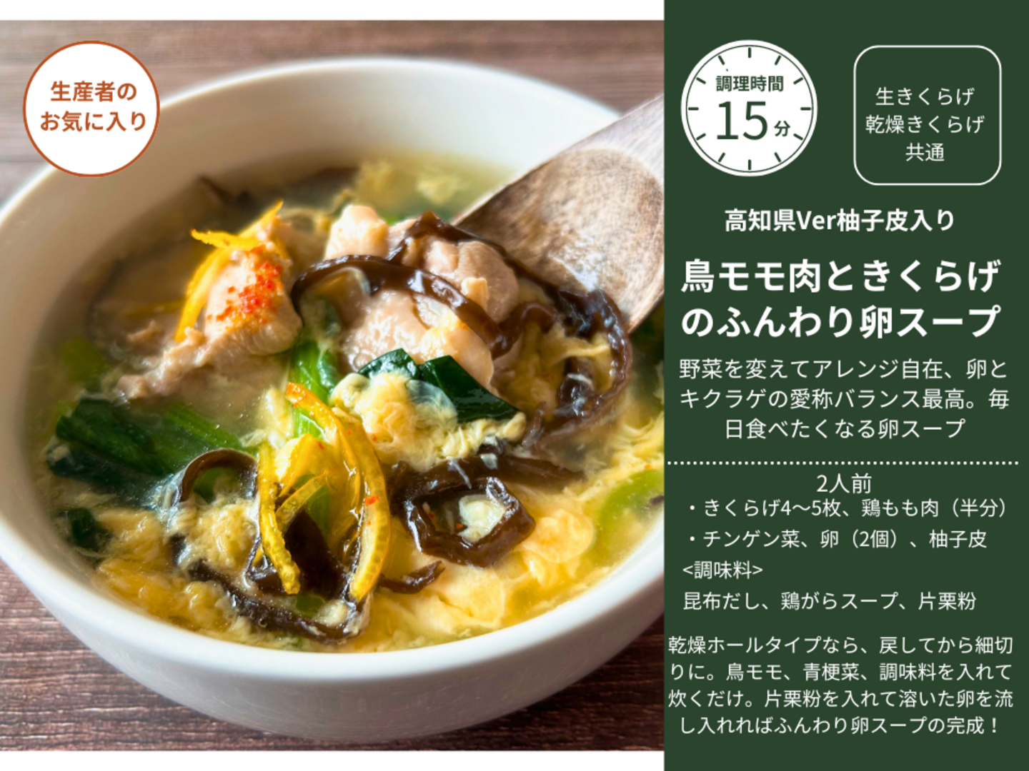 - 2 仁淀川町の豊かな自然と愛情たっぷりの管理で育んだキクラゲを、心を込めてお届けします。