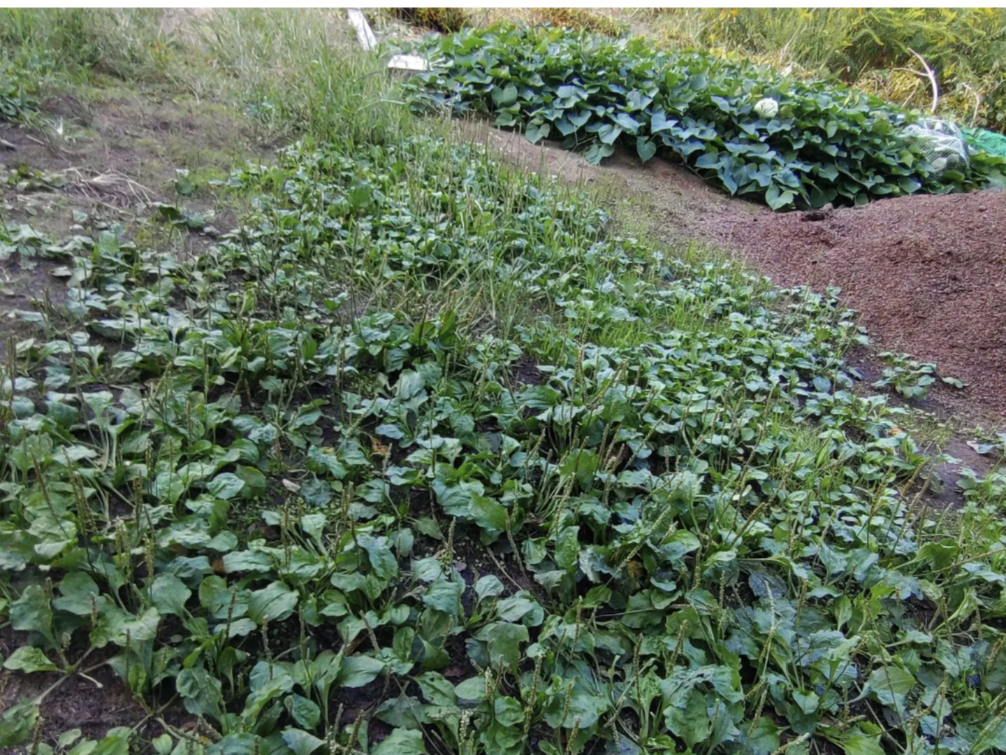 畑横に群生しているオオバコの葉、30枚をご希望の方に…。