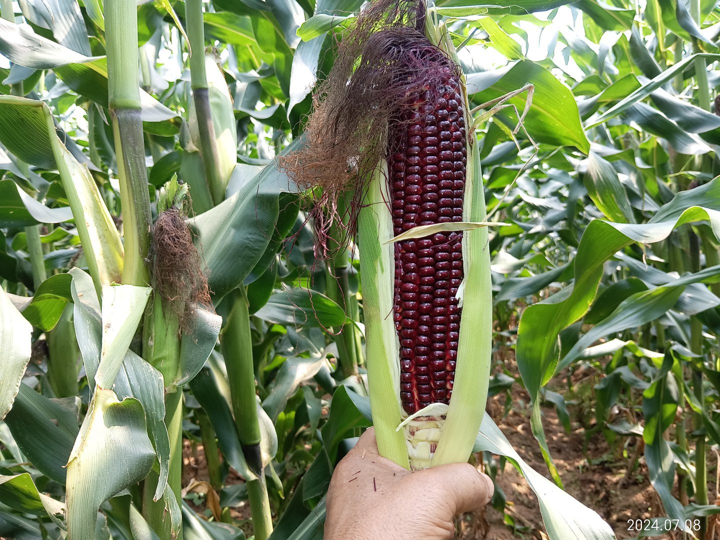 数年前にデビューした新しい品種で色鮮やかな赤いとうもろこし。