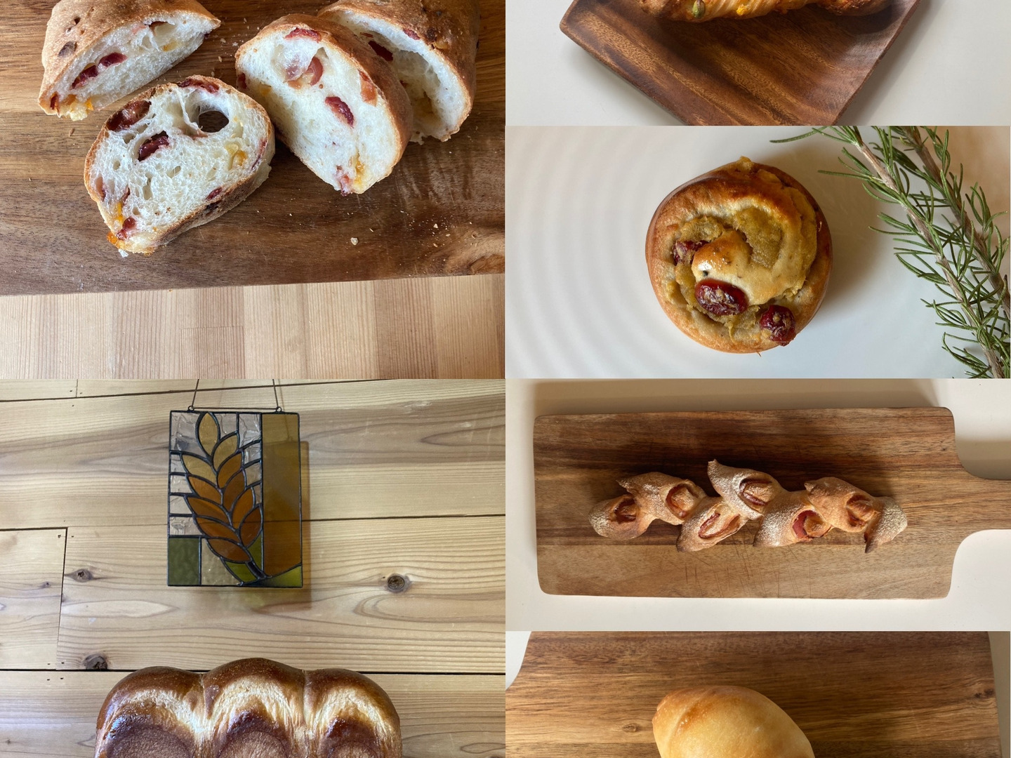 ●小麦粉について///たまゆらの小麦粉は5年間自然栽培で作っていました。現在は畑仲間の動物性堆肥を投入して強力粉寄りの中力粉兵庫県在来種のコウノスを主力に、スペルト小麦とライ麦を育てています。淡路温暖な気候のお陰様で美味しくはなるものの、なかなかパンの主役になれる小麦の栽培には辿り着きません。思い描く小麦粉まで。たまゆらの小麦がないときは国産のものを使います。フィリングも季節の果物をジャムやピールにして、たまゆらのスパイスはウコンやコリアンダーシード、ニンニク、ローズマリー、パセリ、他は出来るだけ地産地消のものに取り組んでいます。