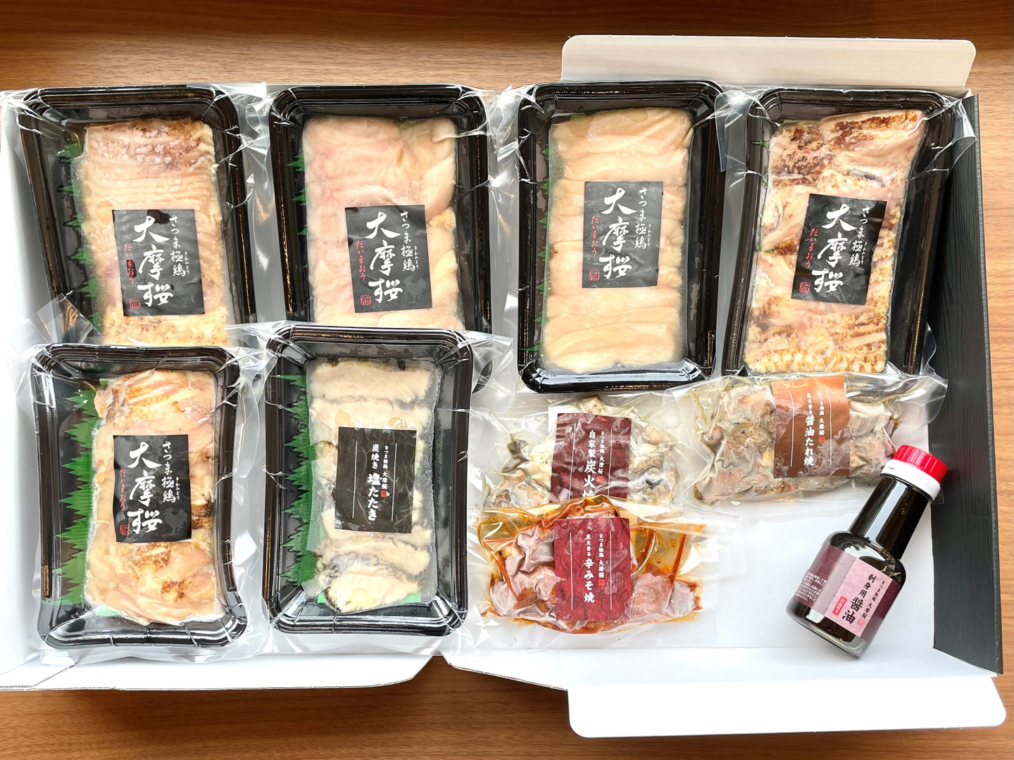 【感謝祭★炭火焼き1パックプレゼント】鹿児島の定番 鶏刺し★大摩桜食べ比べ4種×2P/さしみ醤油(冷凍)