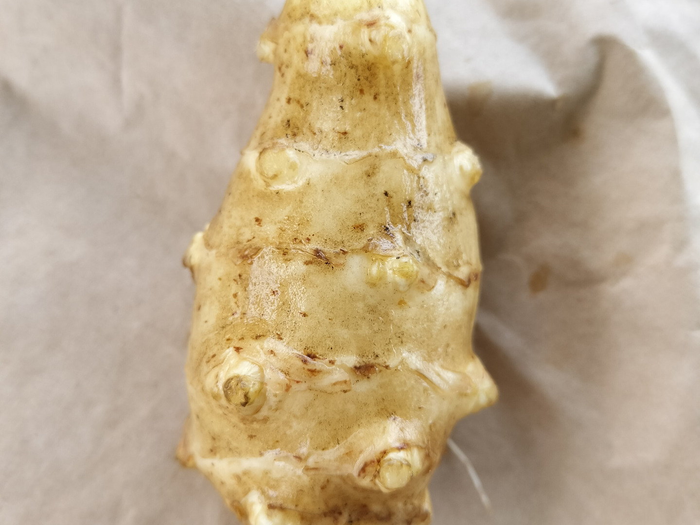 キクイモ大好きの私は、芽が伸びて来た菊芋を掘ってみて、まだ食べられるんじゃないかと思い、調理して食べて見ました。芽が伸びたので、少し軽くなり、生では少し硬いキクイモですが、サクサクとリズミカルに噛めて結構美味しいです!