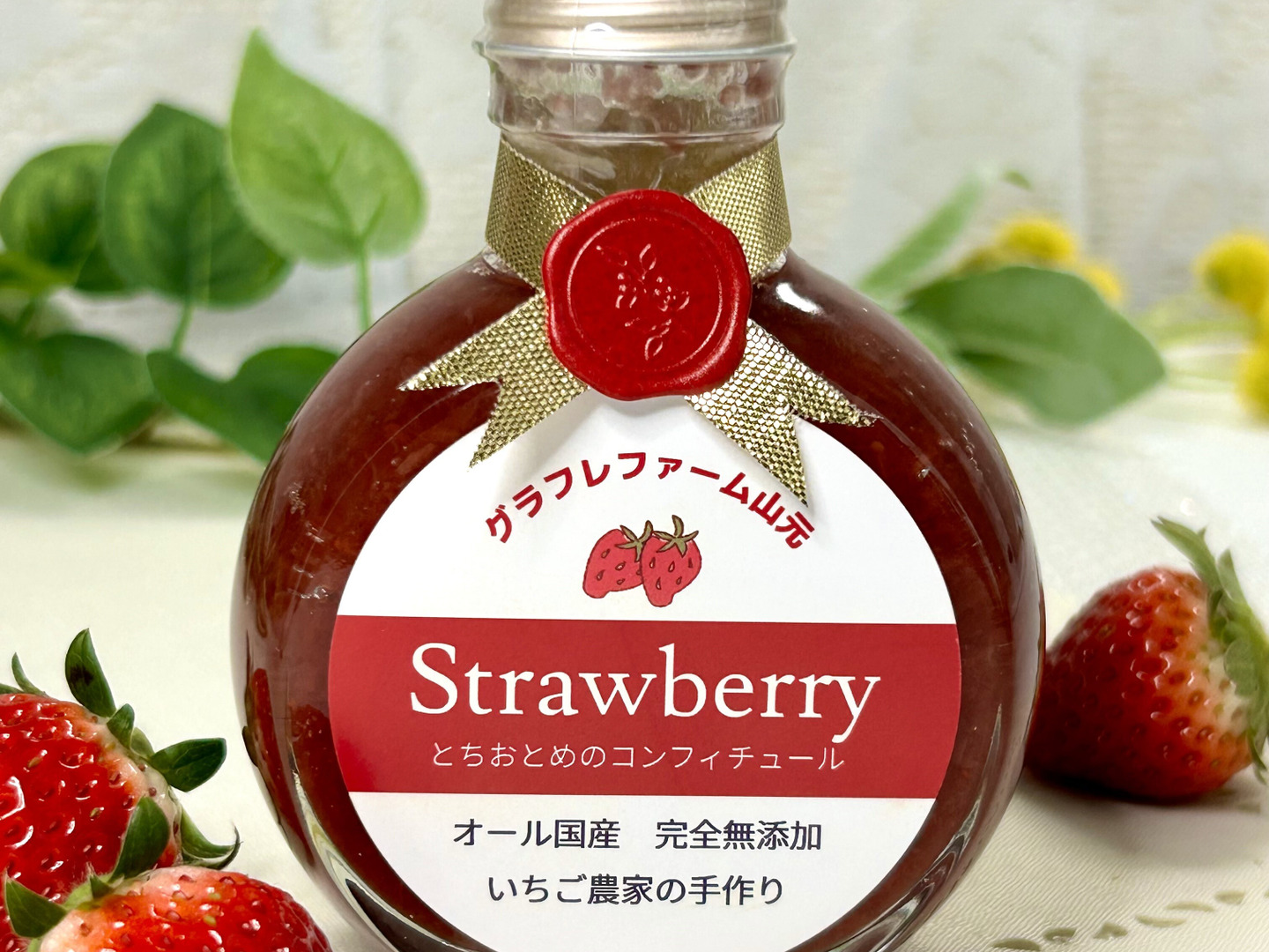 グラフレファーム山元の「とちおとめ」と、ミネラルやオリゴ糖が豊富な北海道産の「甜菜糖」、瀬戸内産の「レモン」のみを使い、オール国産・完全無添加でひとつひとつ丁寧に手作りしています。