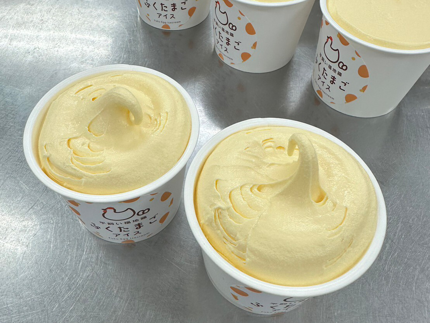 そこで採れたふくたまごと、地元あわら市の田嶋牧場の牛乳を使用した地産地消アイスです。