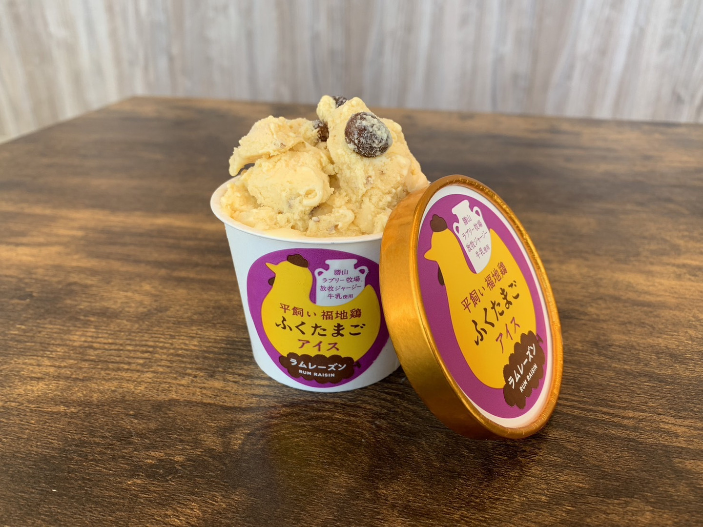 ふくたまごアイスにラムレーズン味が登場しました♪