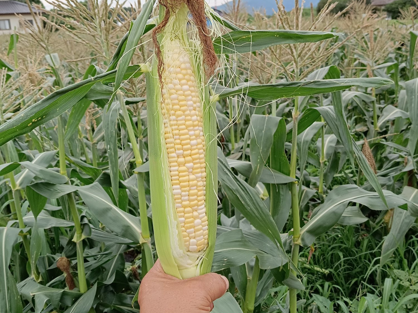 高糖度なのに400g前後とサイズが大きく当農園では500g近いサイズも収穫され、粒皮が柔らかく食感も良い風味が強く果汁たっぷりなとうもろこしです。