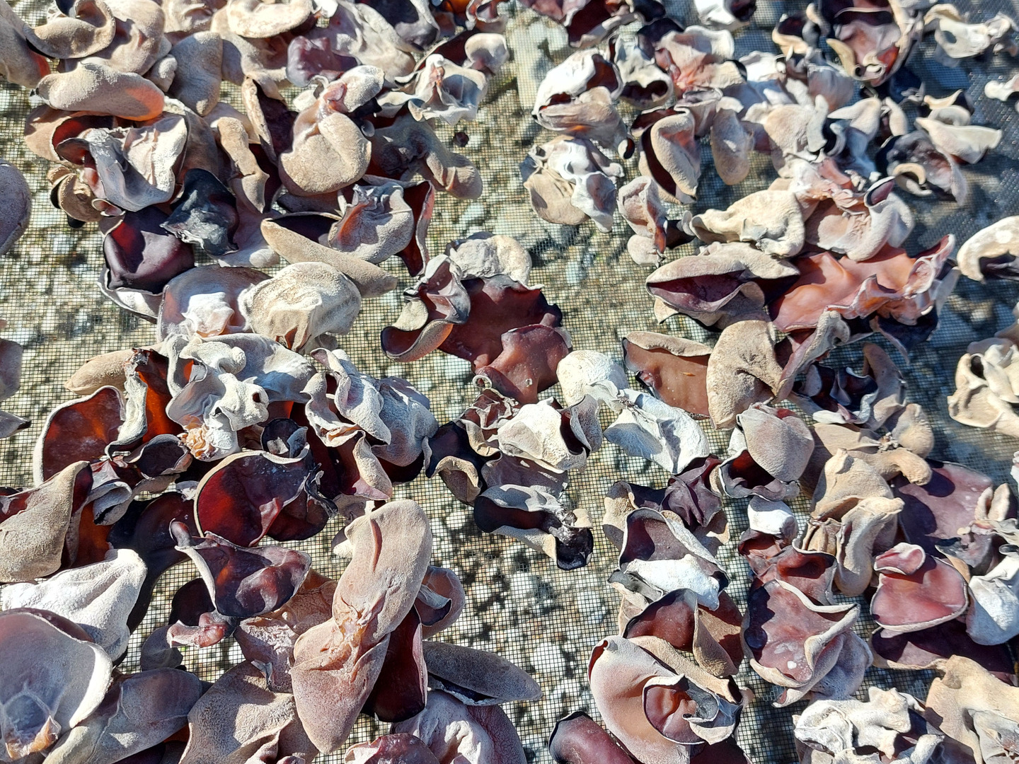 大型で肉厚といわれる品種の「アラゲキクラゲ」という黒きくらげを栽培しています。きくらげ専用のハウスで温度や湿度管理を行っています。