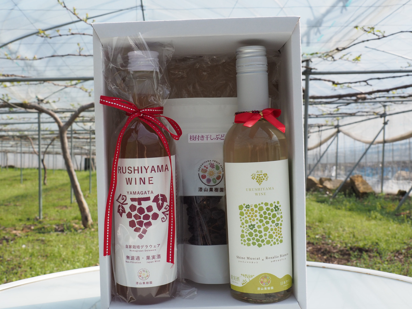【父の日ギフト】ちょいと乾杯!飲みきりサイズ!漆山果樹園ミニワインセット★自家栽培デラウェアワインとシャインマスカット×ロザリオビアンコワインのセット