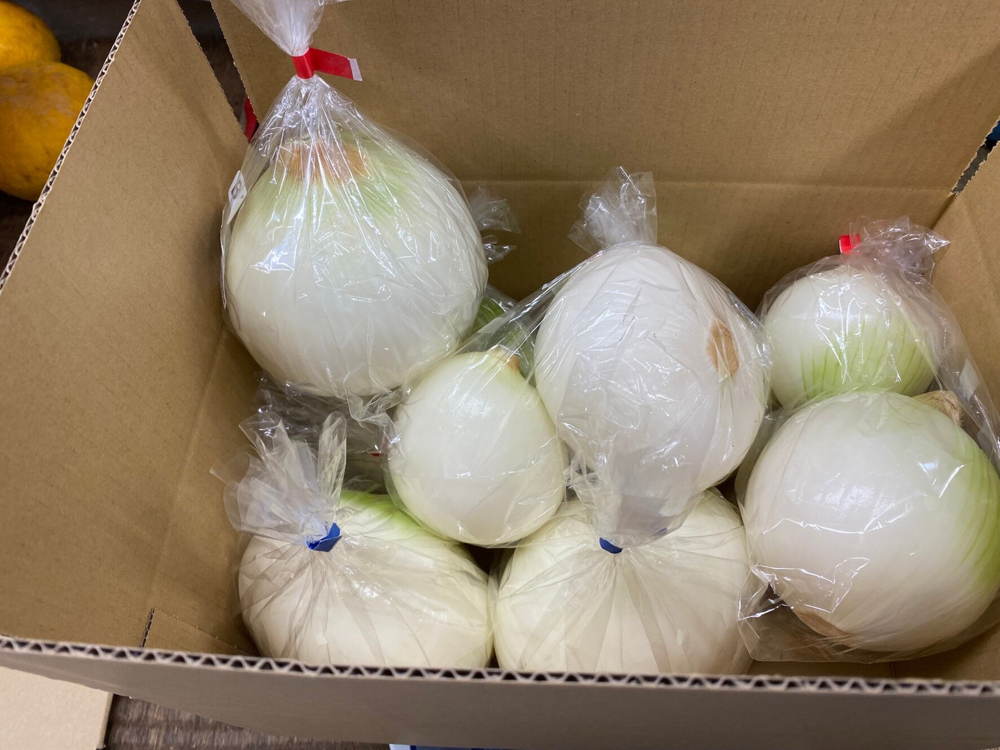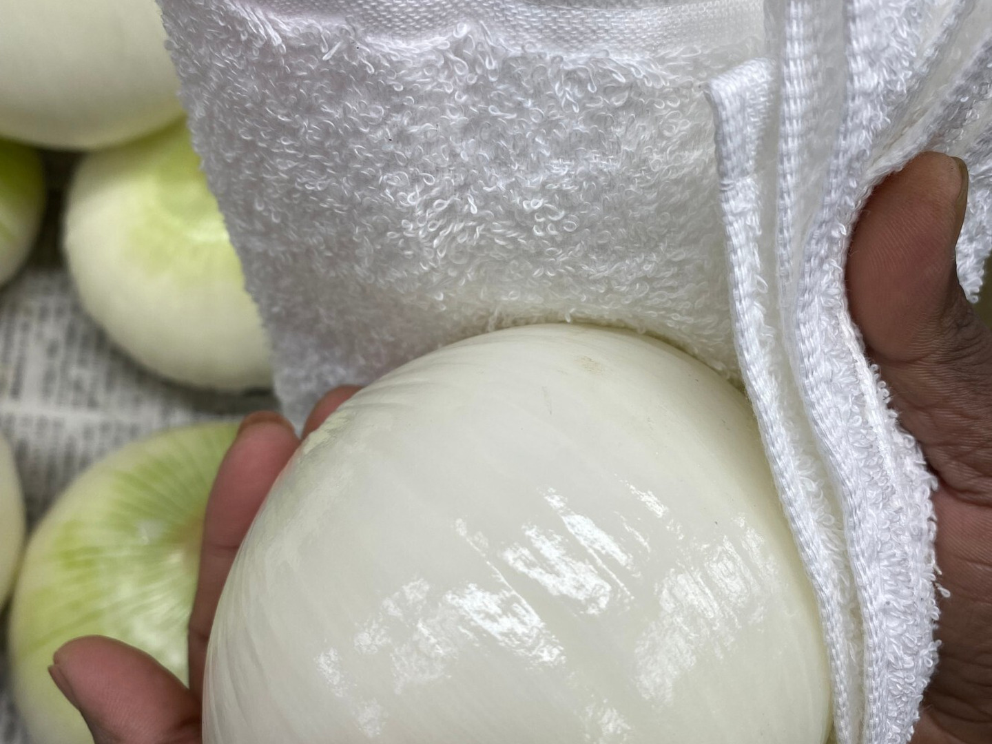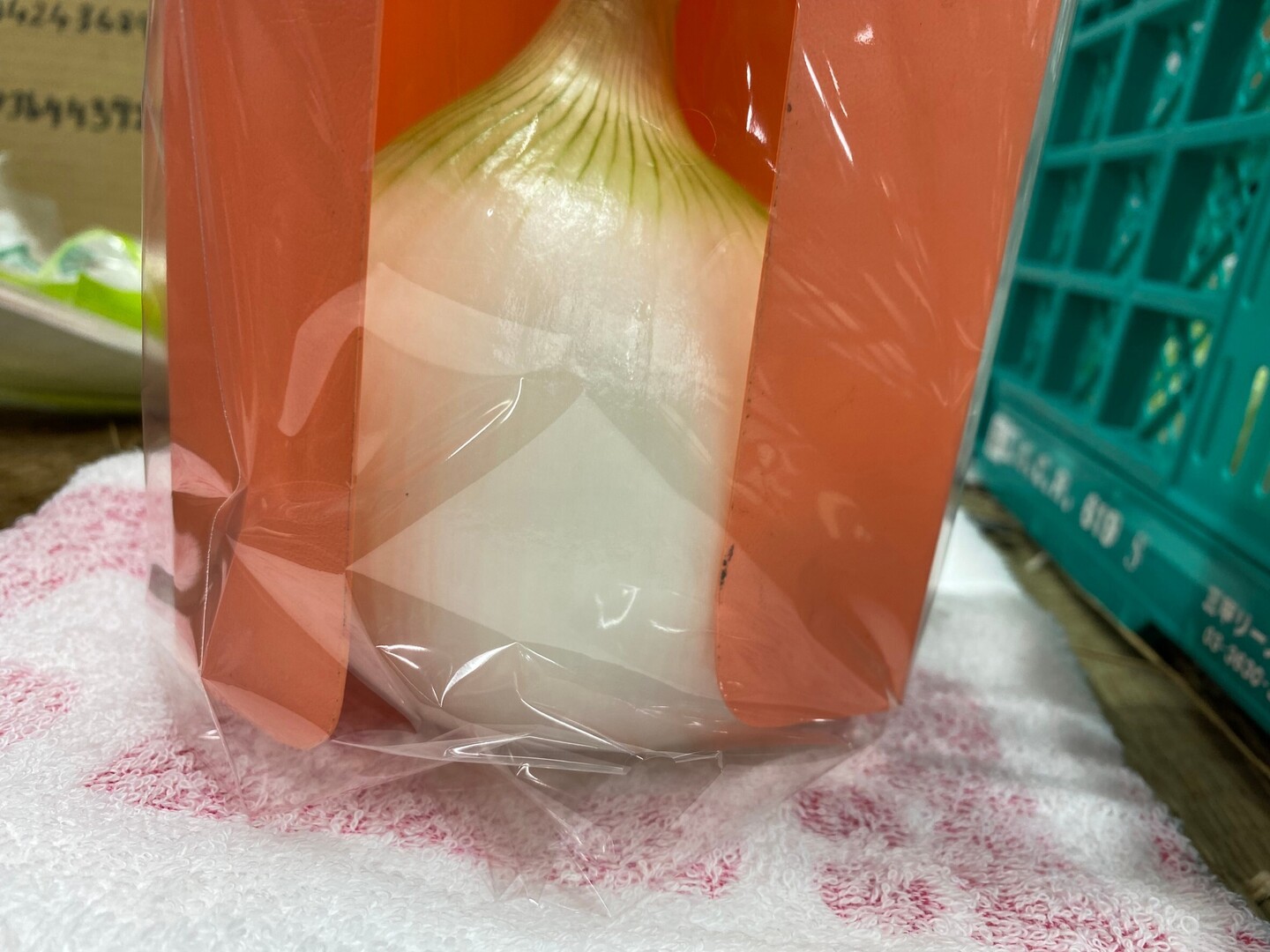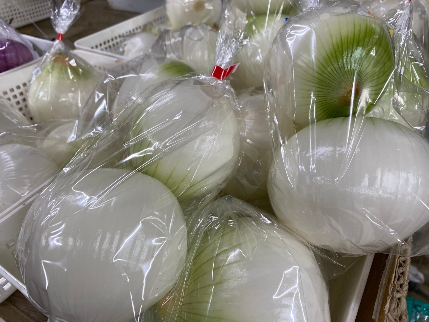 玉ねぎはひとつ一つ皮をむき根も切ったもので、ひとつか二つ入りの個包装します。