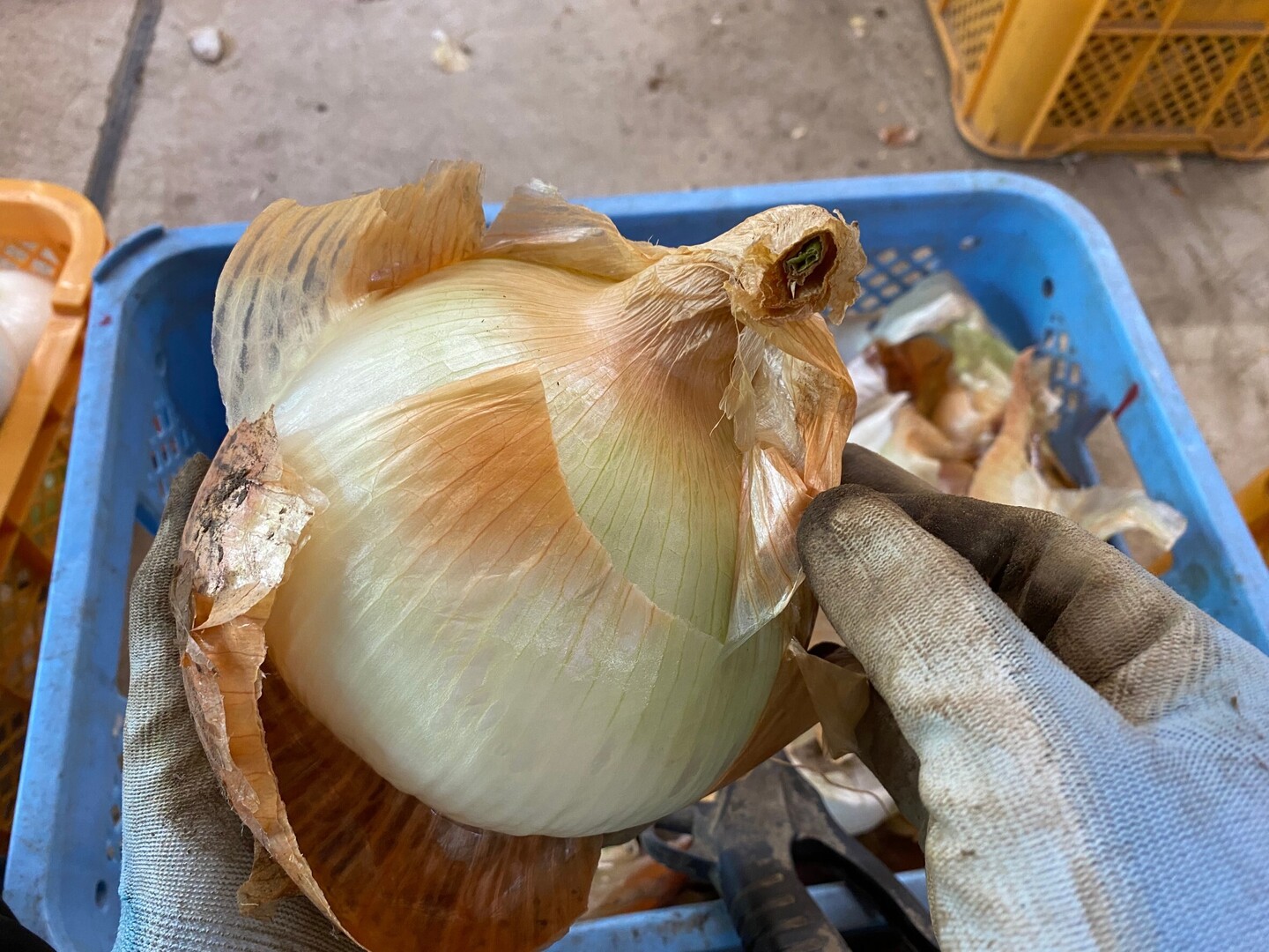 玉ねぎひとつ 約400g~1キロの重量と大き目です。