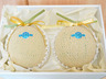 金色のリボンを付けたマスクメロンをMESTARオリジナル化粧箱に入れてお届けします。