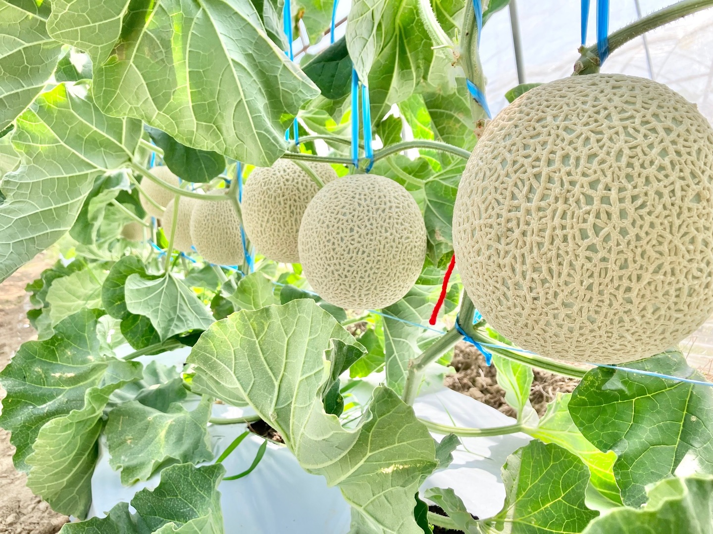 また、メロンに袋を被せることで日差しを遮り、見た目も美しいメロンに仕上がります。