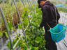 3月にポットに種をまき、4月に畑に植えました。6月になるとズッキーニがたくさんできます。ズッキーニの実は生長が早くて、天気がいいと1日に5㎝くらい伸びて巨大化するので、朝と夕方収穫をしています。