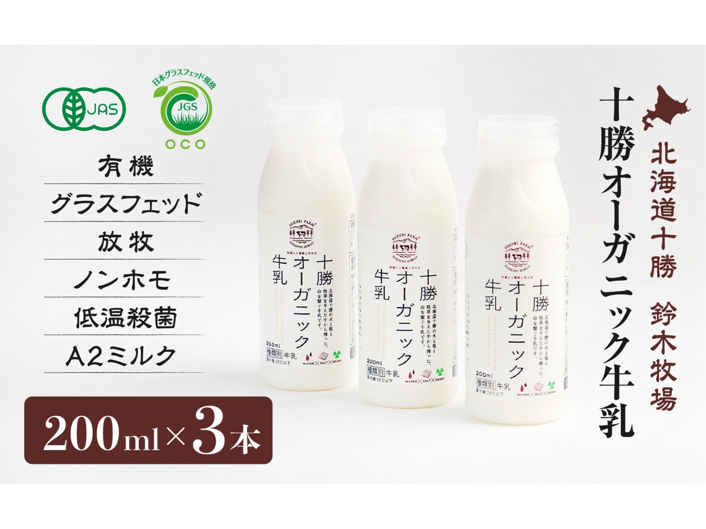 【冬ギフト】十勝オーガニック牛乳200ml×3本 有機・グラスフェッド・A2ミルク・ノンホモ・低温殺菌・放牧・北海道十勝・産地直送