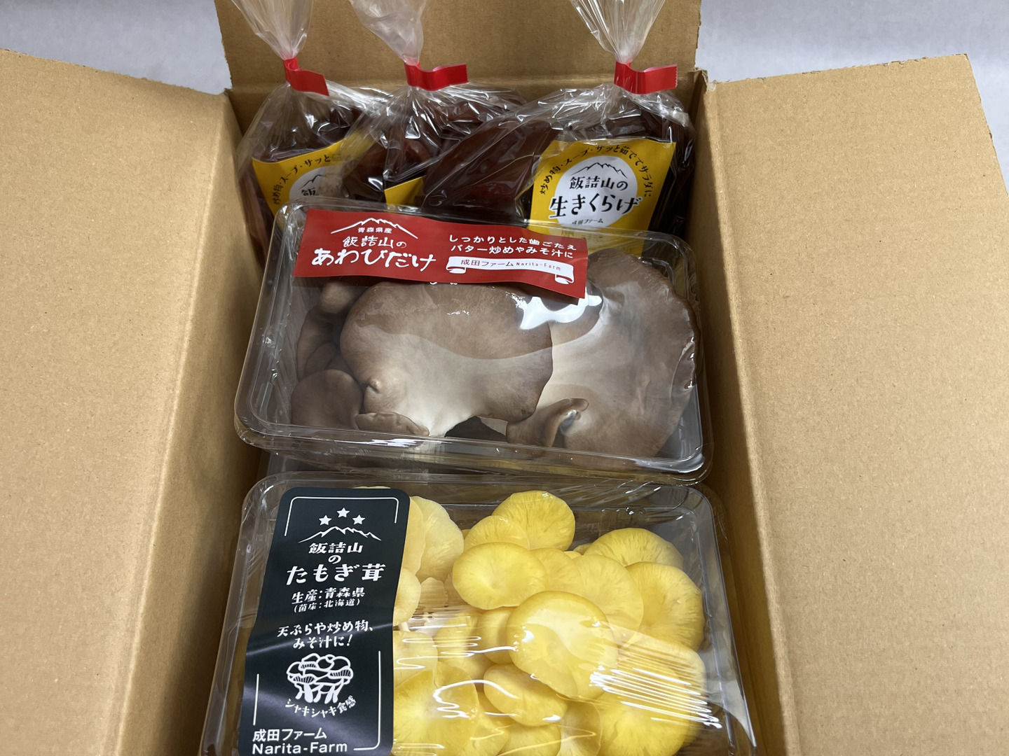 - 新鮮なたもぎたけ、あわびたけ、きくらげが入っている